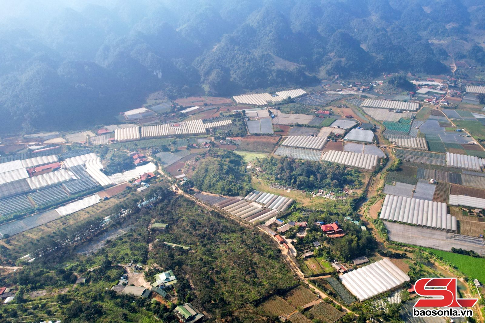 Bên cạnh những biện pháp canh tác truyền thống, điểm sáng trong bức tranh sản xuất nông nghiệp tại Mộc Sơn chính là sự chuyển dịch mạnh mẽ sang mô hình nông nghiệp ứng dụng công nghệ cao. Những khu nhà lưới, nhà màng hiện đại mọc lên ngày càng nhiều, trở thành "lá chắn" vững chắc bảo vệ cây trồng trước sự khắc nghiệt của thiên nhiên.