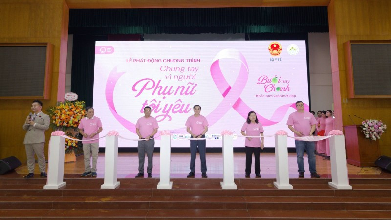 Các đại biểu cắt băng lễ phát động chiến dịch truyền thông nâng cao nhận thức về bệnh ung thư vú năm 2025.