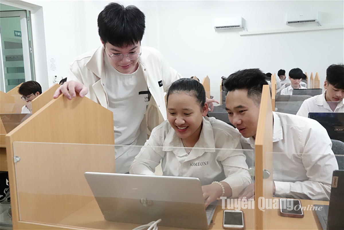 Sinh viên ngành Công nghệ thông tin, Trường Đại học Tân Trào đọc tài liệu tham khảo trên mạng Internet.