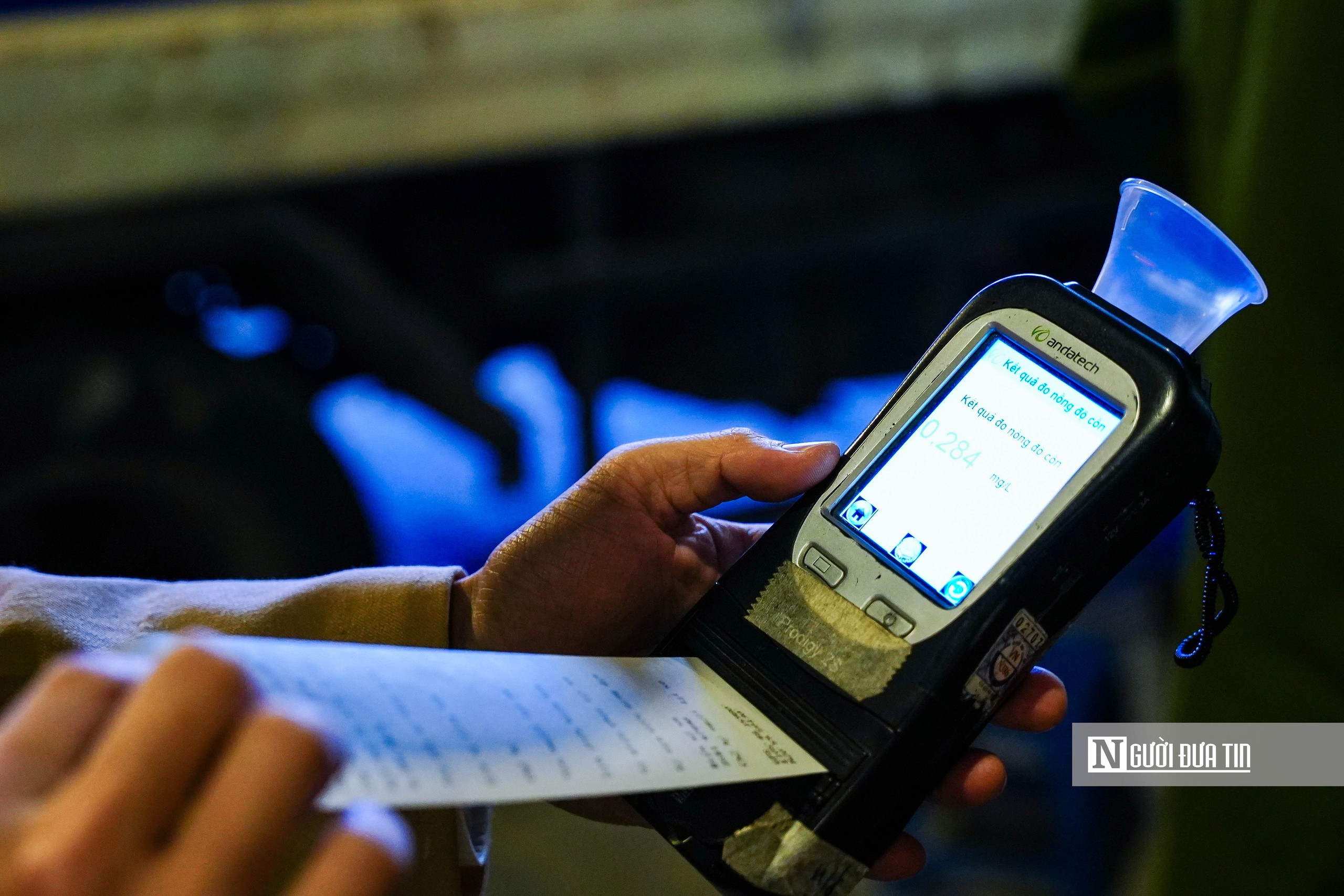 Sau khi máy báo phát hiện có nồng độ cồn trong hơi thở, nam tài xế được mời vào trong chốt để đo định lượng. Kết quả cho thấy, tài xế này vi phạm 0,284 miligam/lít khí thở.