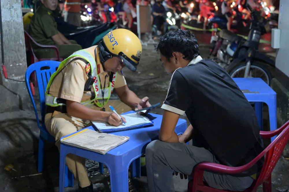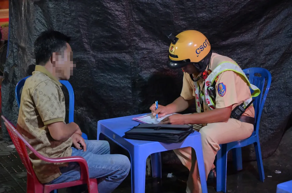 20 giờ 48 phút, tổ công tác phát hiện ông NVH (50 tuổi, ngụ TP.HCM) điều khiển xe máy có biểu hiện nghi vấn nên tiến hành dừng phương tiện kiểm tra. Qua kiểm tra, tổ công tác phát hiện ông H vi phạm nồng độ cồn ở mức 0,259mg/l khí thở. CSGT lập biên bản vi phạm hành chính theo quy định.