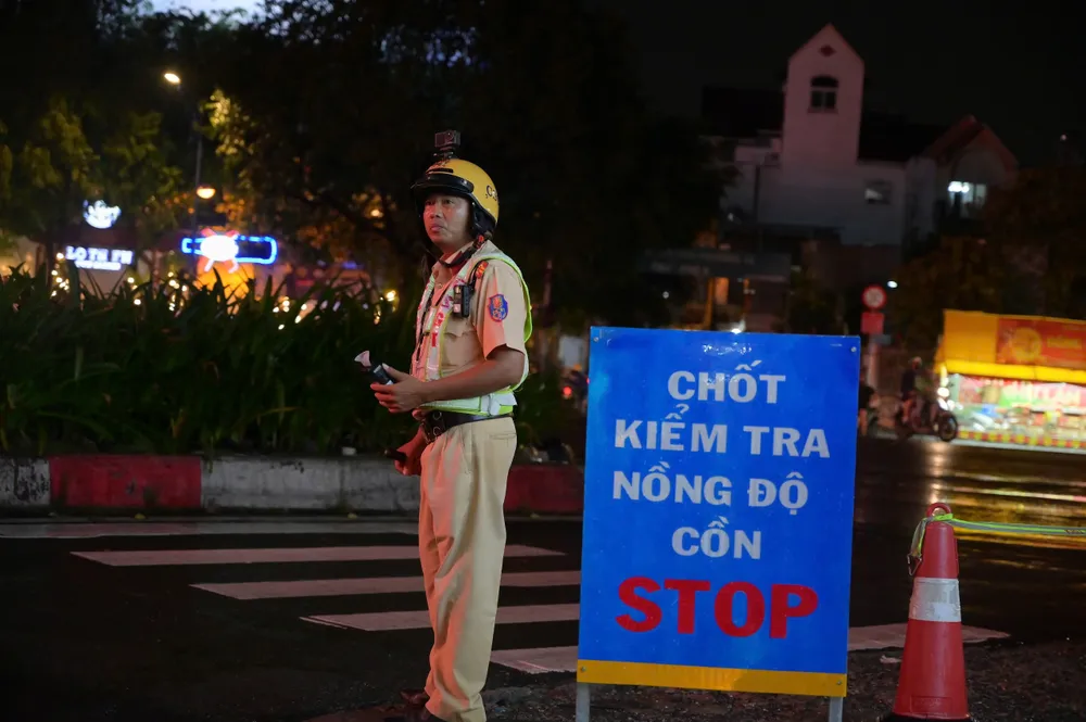 Tối 20-10, Đội CSGT Tân Sơn Nhất, Phòng Cảnh sát giao thông (PC08), Công an TP.HCM lập chốt kiểm soát kết hợp tuần tra lưu động xử lý chuyên đề nồng độ cồn trên địa bàn đảm trách.