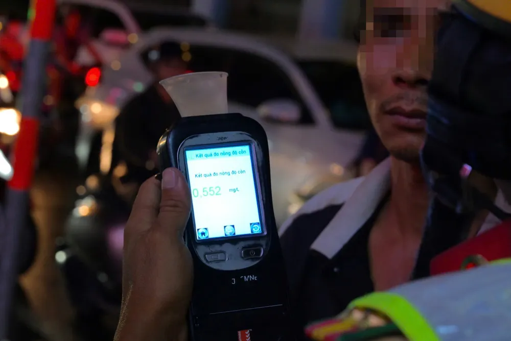 Đến 21 giờ 5 phút, tổ công tác tiếp tục phát hiện anh BKU (29 tuổi, quê TP Huế) có biểu hiện nghi vấn nên tiến hành kiểm tra. Kết quả đo nồng độ cồn cho thấy, anh U vi phạm ở mức 0,552mg/l khí thở, vượt mức kịch khung.