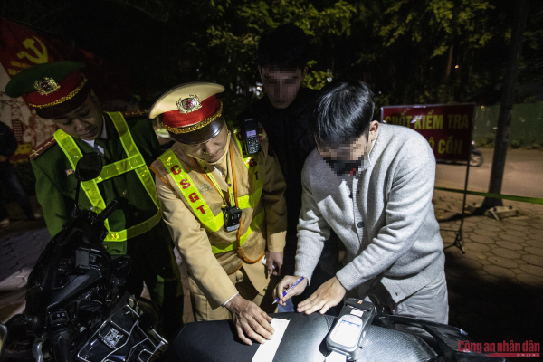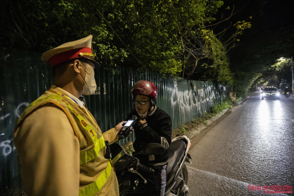 Ghi nhận của PV Báo CAND cùng tổ công tác của Đội CSGT số 6 làm nhiệm vụ trên tuyến đường Đức Thắng (phường Đông Ngạc, Hà Nội) từ 20h tối đến hơn 23h đêm, trong suốt khoảng 4 giờ đồng hồ làm nhiệm vụ dưới thời tiết giá rét, Cảnh sát đã phát hiện nhiều trường hợp tài xế xe máy vi phạm nồng độ cồn từ mức 1 đến kịch khung.