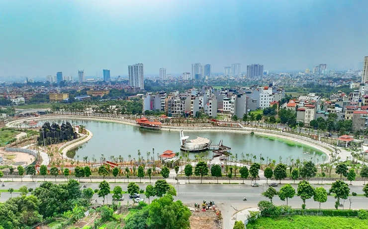 Công viên Ngọc Thụy góp phần tạo điểm nhấn về kiến trúc và cảnh quan đô thị, không gian xanh, sạch, đẹp, hiện đại cho Thủ đô. Ảnh Lê Hải.