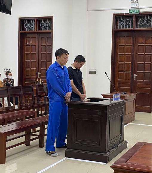 Hai đối tượng Dự (áo đen) và Ngọc (áo xanh) tại tòa. Nguồn: ENV