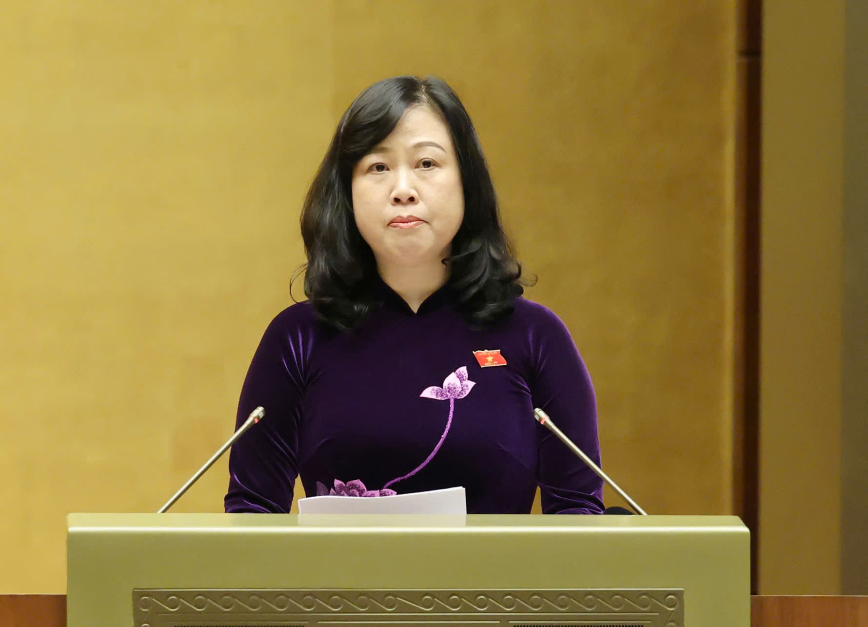 Bộ trưởng Bộ Y tế Đào Hồng Lan trình bày tờ trình dự án luật, sáng 23-10. Ảnh: QUANG PHÚC