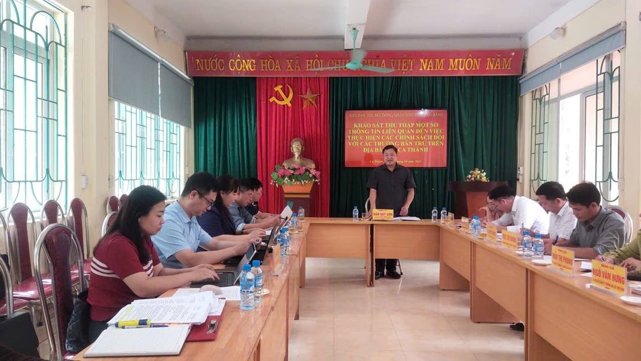 Ban Dân tộc HĐND tỉnh Cao Bằng làm việc với UBND xã Ca Thành về việc thực hiện các chính sách đối với trường phổ thông dân tộc bán trú. Ảnh: Đinh Huệ