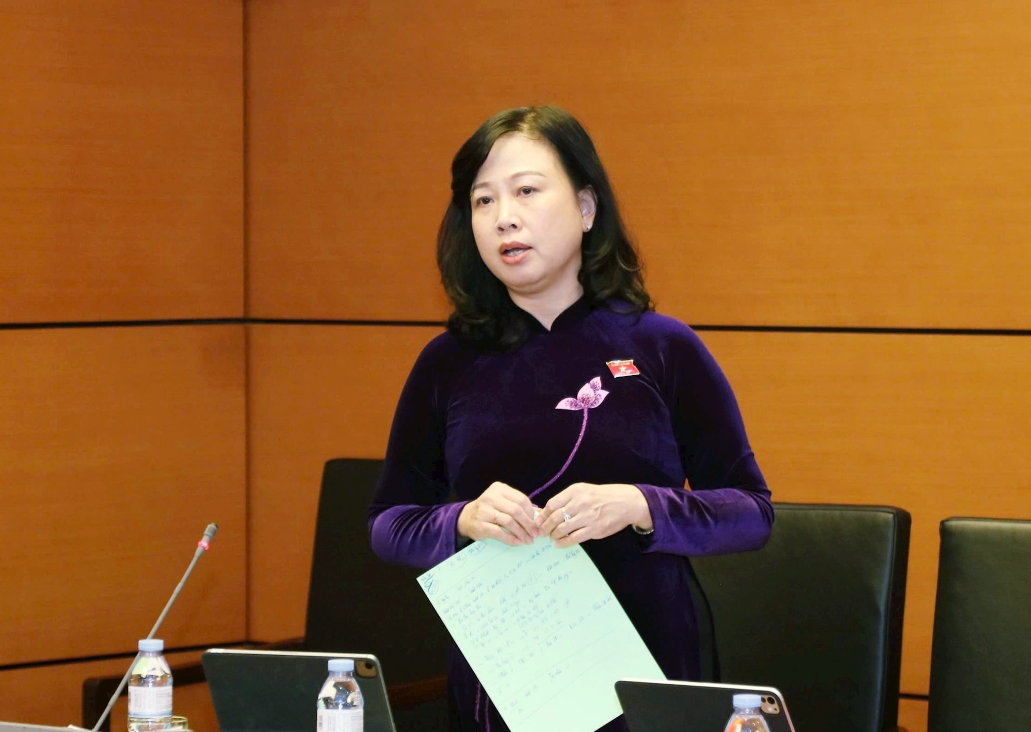 Bộ trưởng Bộ Y tế Đào Hồng Lan phát biểu tại Tổ 8 (gồm Đoàn ĐBQH các tỉnh Bắc Ninh, Cà Mau)