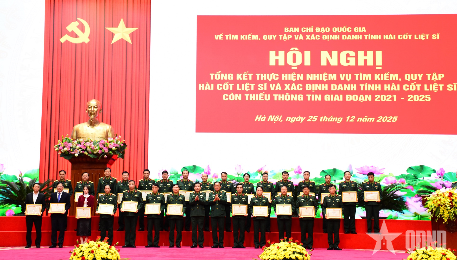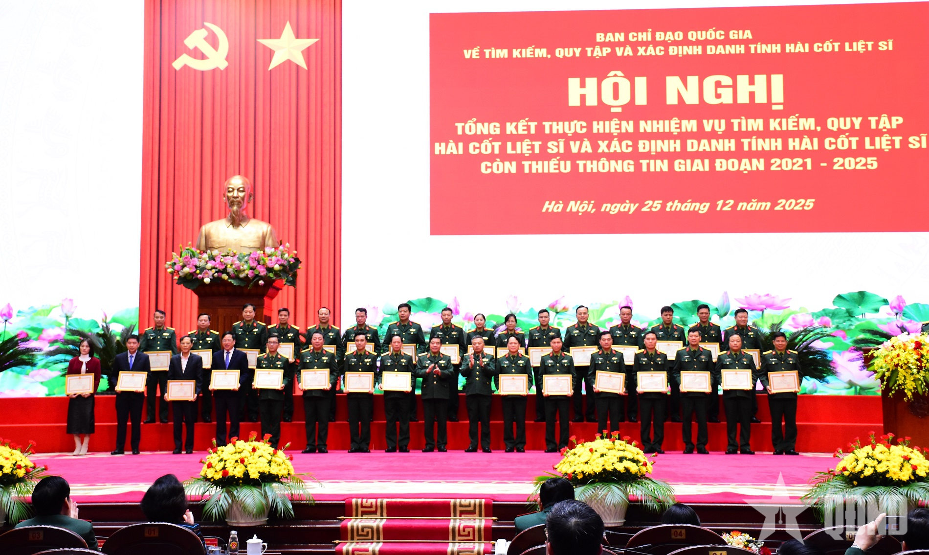 Tại hội nghị, 48 tập thể và 69 cá nhân có thành tích xuất sắc trong thực hiện nhiệm vụ tìm kiếm, quy tập hài cốt liệt sĩ và xác định danh tính hài cốt liệt sĩ còn thiếu thông tin giai đoạn 2021 - 2025 được nhận Bằng khen của Bộ trưởng Bộ Quốc phòng.