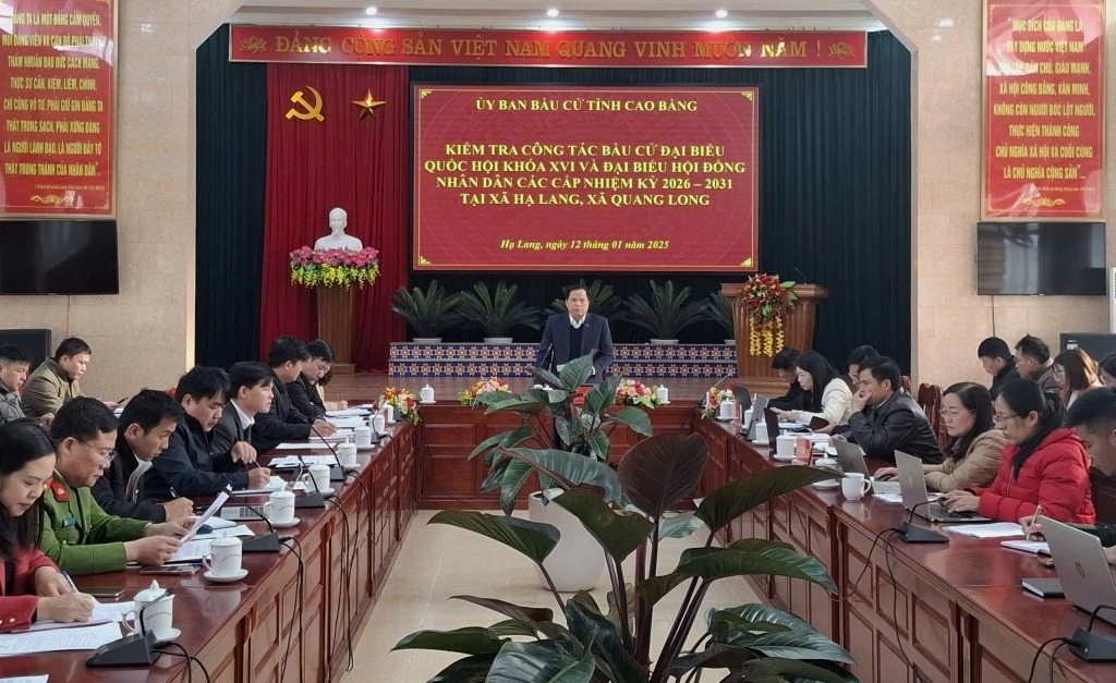 Tại buổi làm việc, đoàn nghe đại diện lãnh đạo 2 xã Hạ Lang, Quang Long báo cáo về tình hình triển khai các nội dung liên quan đến công tác bầu cử. Theo đó, 2 xã đã triển khai nghiêm túc công tác chuẩn bị cho cuộc bầu cử đúng tiến độ, đúng quy định, dư luận nhân dân đồng tình, phấn khởi. Trong đó, tập trung vào việc thành lập thành lập Ủy ban Bầu cử; các tiểu ban chỉ đạo công tác thông tin tuyên truyền, an ninh, trật tự an toàn xã hội và y tế; tiểu ban chỉ đạo giải quyết khiếu nại, tố cáo; tổ chuyên viên giúp việc Ủy ban Bầu cử.