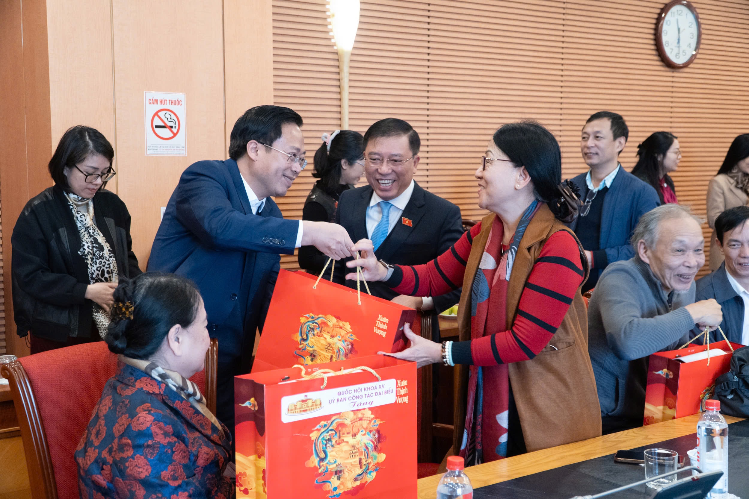 Các Phó Chủ nhiệm Ủy ban Công tác đại biểu: Nguyễn Tuấn Anh, Nguyễn Đại Thắng trao quà tặng các đại biểu. Ảnh: Phạm Thắng