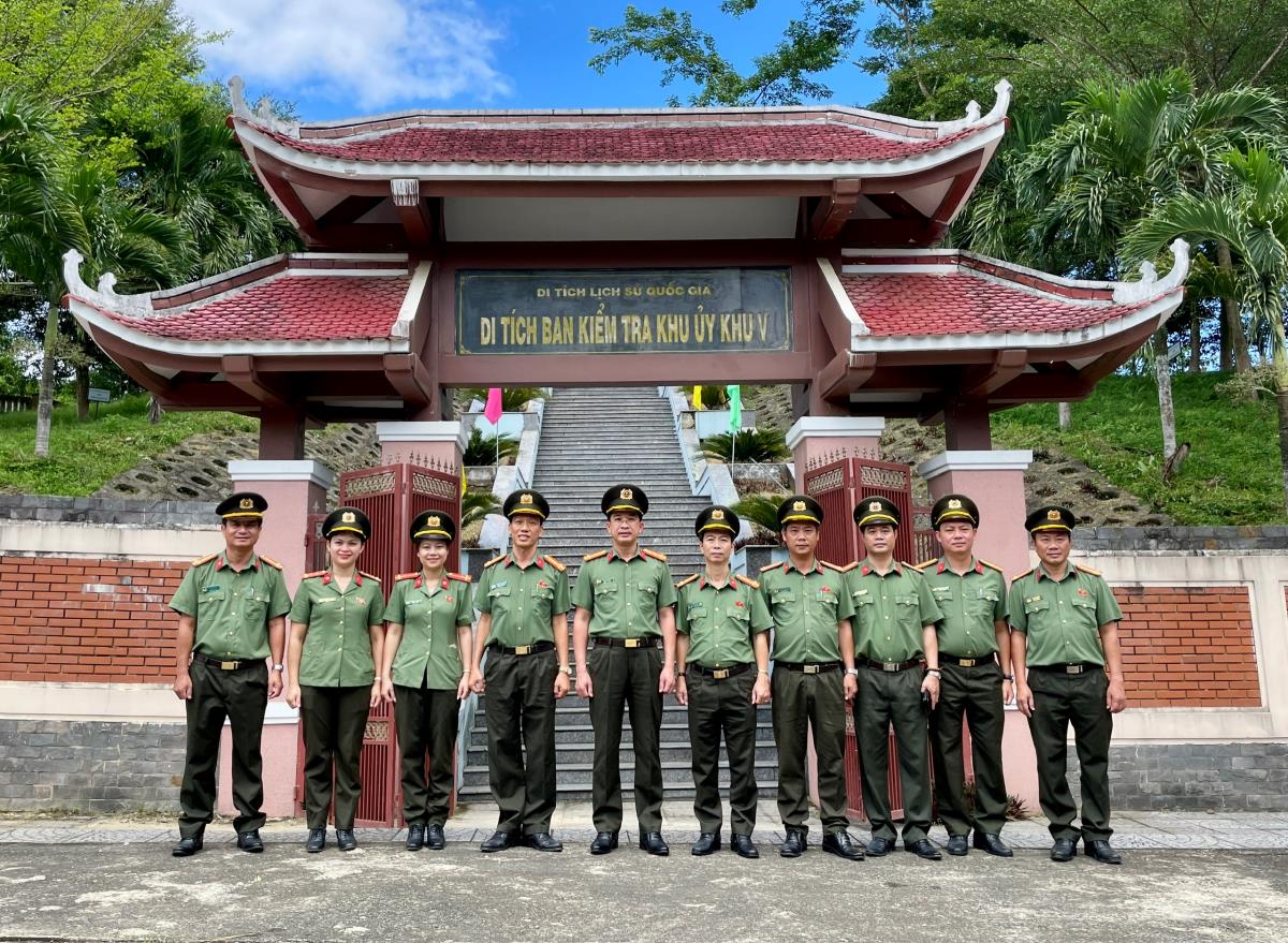 Đoàn công tác Ủy Ban kiểm tra Đảng ủy Công an TP Đà Nẵng chụp ảnh lưu niệm tại Di tích lịch sử quốc gia Ban kiểm tra Khu ủy Khu V.