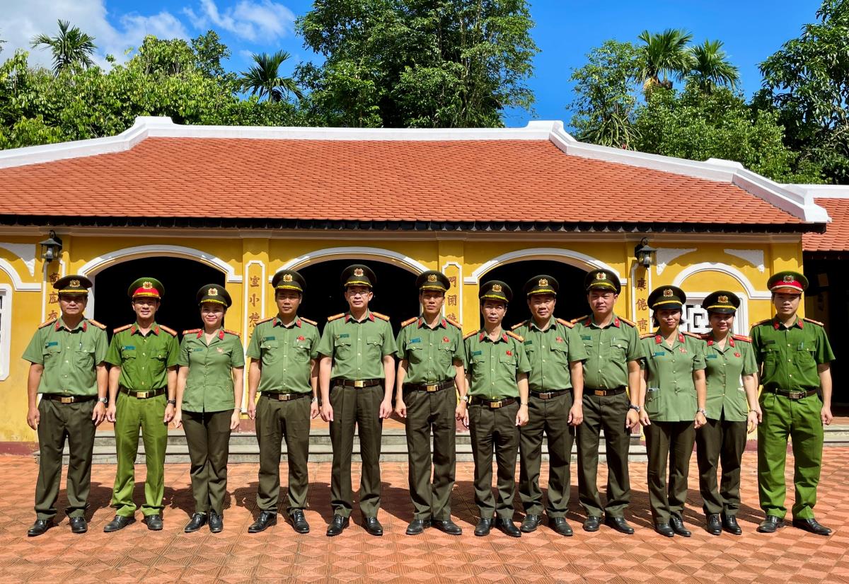 Đoàn công tác của Ủy Ban kiểm tra Đảng ủy Công an TP Đà Nẵng chụp ảnh lưu niệm tại Nhà lưu niệm Cụ Huỳnh Thúc Kháng.