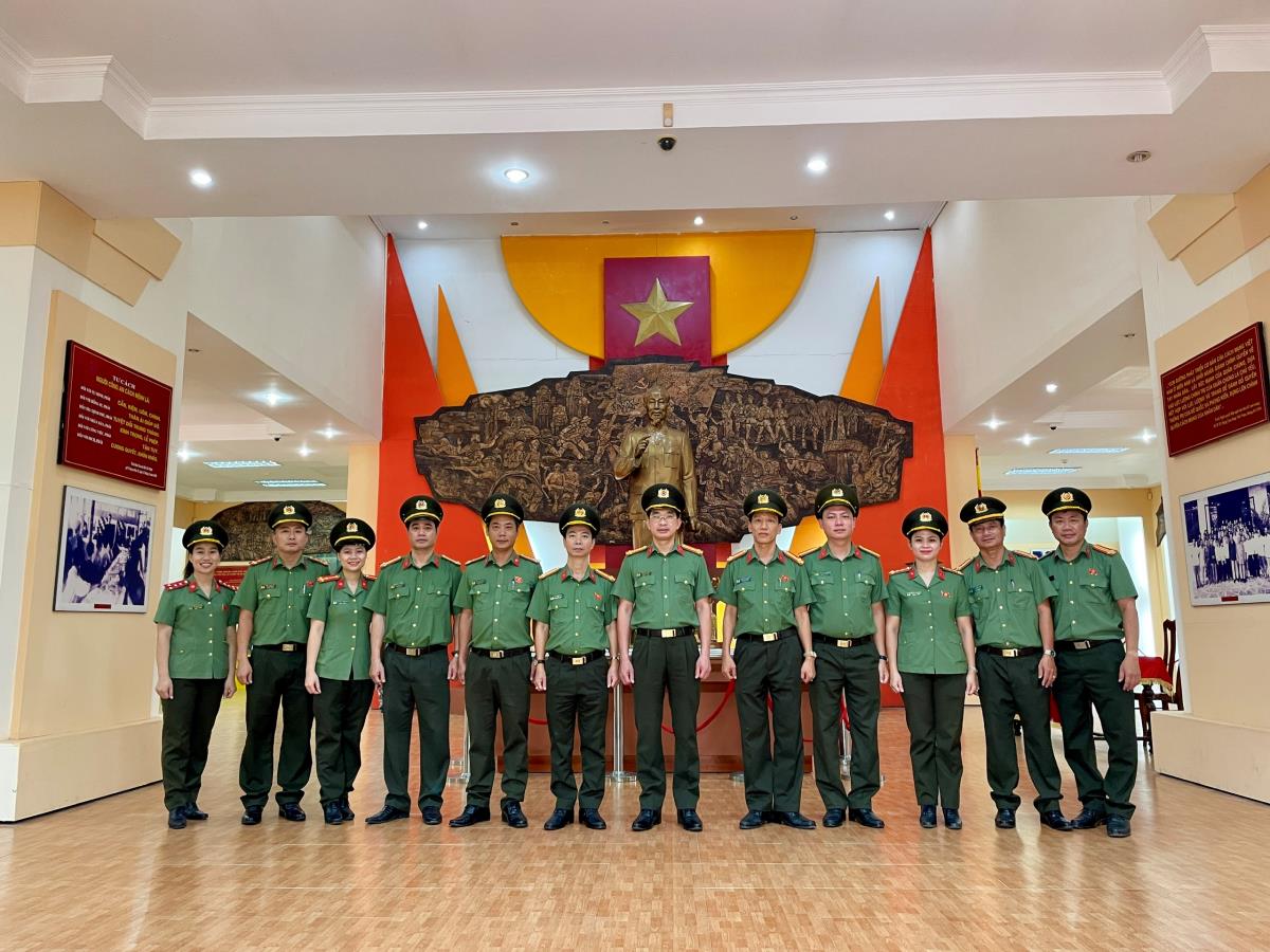 Đoàn công tác của Ủy Ban kiểm tra Đảng ủy Công an TP Đà Nẵng chụp ảnh lưu niệm bên chân dung Bác Hồ tại Nhà truyền thống Khu Di tích An ninh khu 5.