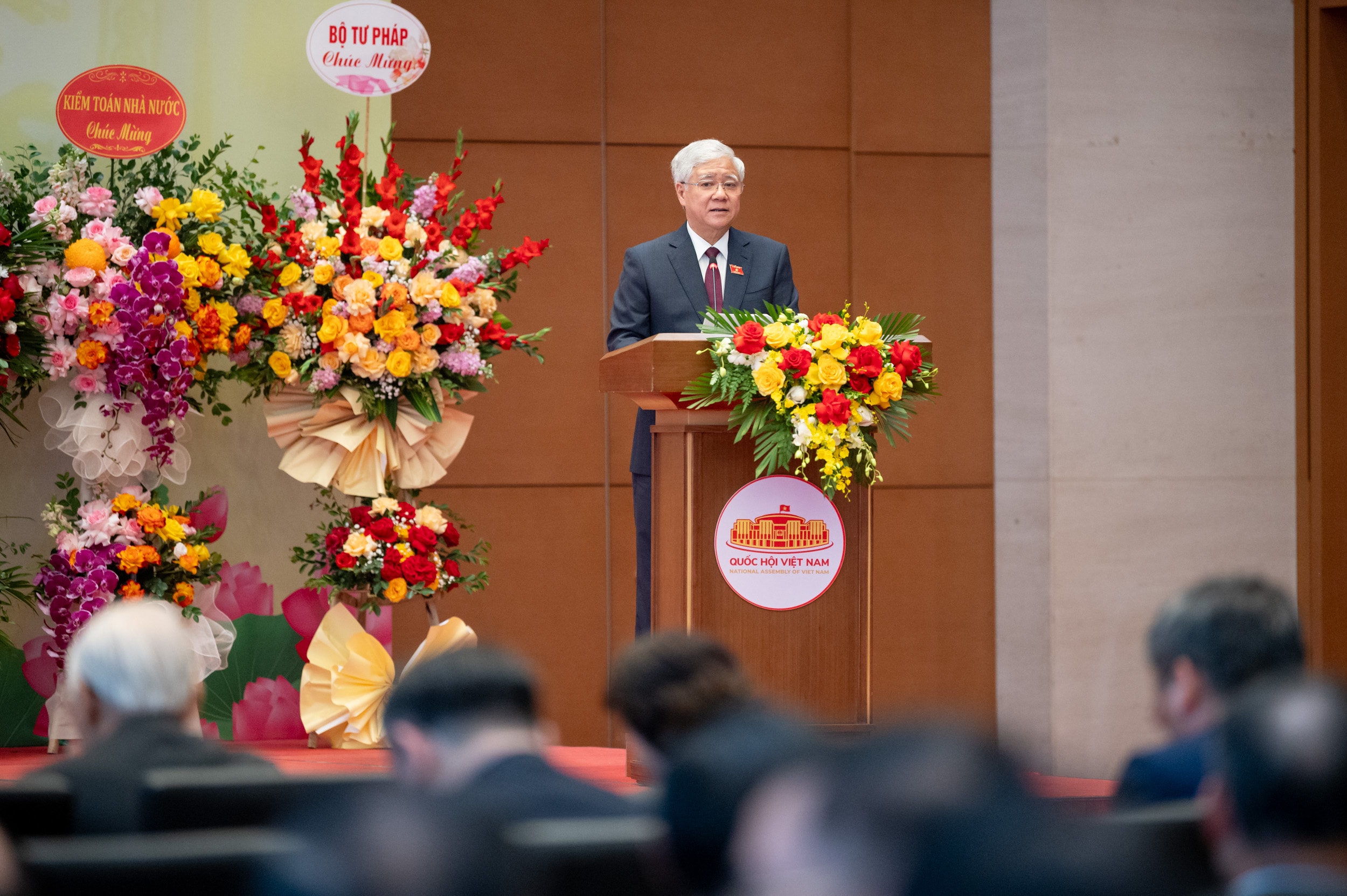 Trước hết, tôi xin chuyển lời của Ủy viên Bộ Chính trị, Bí thư Đảng ủy Quốc hội, Chủ tịch Quốc hội Trần Thanh Mẫn gửi tới các đại biểu, các lãnh đạo, nguyên lãnh đạo Quốc hội, lãnh đạo Ủy ban Kinh tế và Tài chính cùng toàn thể cán bộ, công chức của Ủy ban Kinh tế và Tài chính qua các thời kỳ những tình cảm thân thiết và lời chúc mừng tốt đẹp nhất.