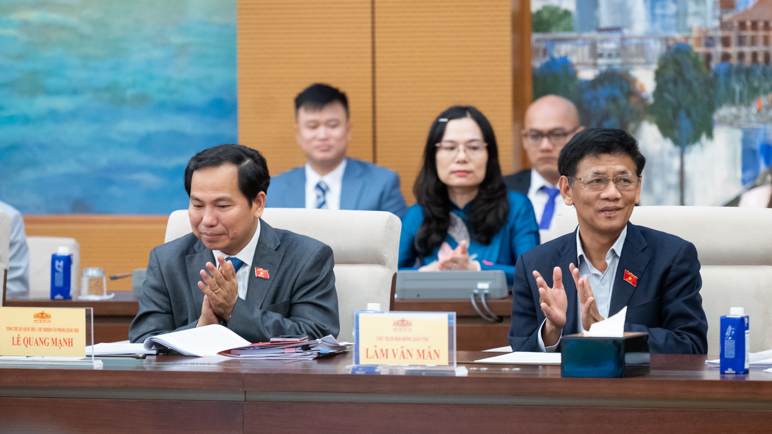 Cùng dự có các Ủy viên Trung ương Đảng: Chủ nhiệm Ủy ban Kinh tế và Tài chính Phan Văn Mãi; Chủ nhiệm Ủy ban Văn hóa và Xã hội Nguyễn Đắc Vinh; Chủ nhiệm Ủy ban Pháp luật và Tư pháp Hoàng Thanh Tùng; Tổng Thư ký Quốc hội, Chủ nhiệm Văn phòng Quốc hội Lê Quang Mạnh; Trưởng Ban Chính sách, chiến lược Trung ương Nguyễn Thanh Nghị; Bộ trưởng Bộ Y tế Đào Hồng Lan; Phó Chủ nhiệm Thường trực Ủy ban Dân nguyện và Giám sát Lê Thị Nga; đại diện Thường trực Hội đồng Dân tộc và các Ủy ban của Quốc hội; đại diện lãnh đạo một số Bộ, ngành, cơ quan Trung ương; các ĐBQH là thành viên Ủy ban Kinh tế và Tài chính…