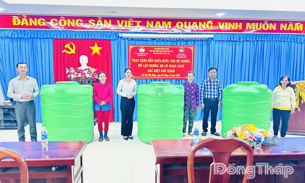 Tổng cộng 13 bồn nước (dung tích 1.000 lít/bồn) đã được trao cho các hộ nghèo, hộ cận nghèo, hộ có hoàn cảnh đặc biệt khó khăn về dụng cụ chứa nước sinh hoạt, với tổng kinh phí gần 23 triệu đồng, trong đó Ban Đại diện Phật giáo Hòa Hảo tỉnh Đồng Tháp hỗ trợ 20 triệu đồng, phần kinh phí còn lại được trích từ Quỹ Vì người nghèo của tỉnh.