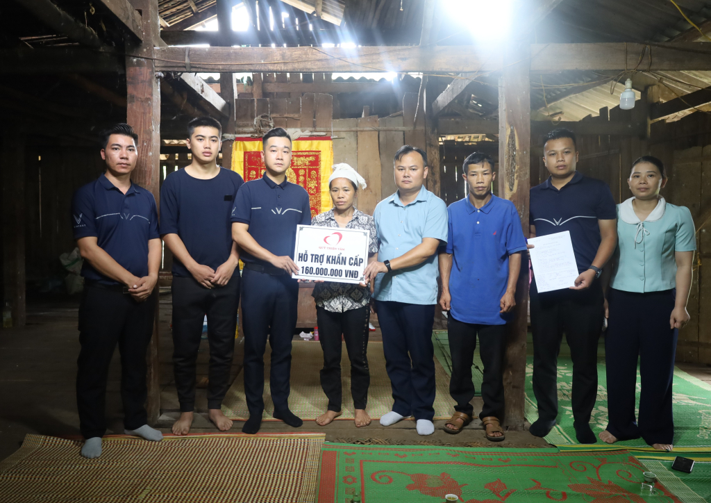 Tại gia đình, đại diện Quỹ Thiện Tâm, Tập đoàn Vingroup trao 160 triệu đồng hỗ trợ cho gia đình chị Hoàng Thị Khuyên, trong đó 100 triệu đồng hỗ trợ tử vong và 60 triệu đồng hỗ trợ xây dựng nhà mới, nhằm giúp gia đình sớm khắc phục khó khăn, ổn định cuộc sống.