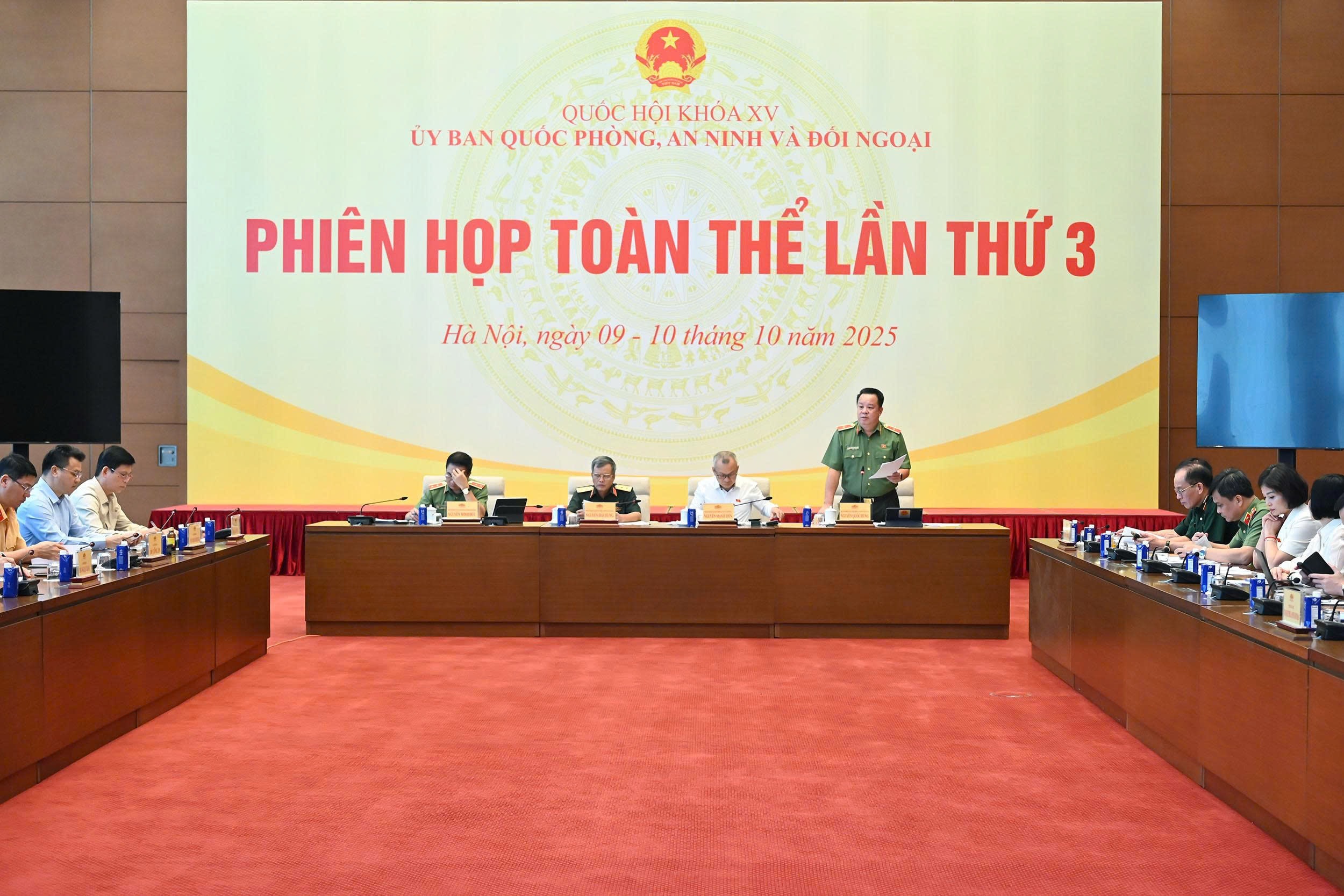 Phát biểu kết luận phiên họp, Phó Chủ nhiệm Ủy ban Quốc phòng, An ninh và Đối ngoại Nguyễn Quốc Hùng đề nghị, Chính phủ và Thường trực Ủy ban tiếp thu tối đa các ý kiến phát biểu, hoàn thiện Báo cáo và Tờ trình thẩm tra để trình Quốc hội tại Kỳ họp thứ Mười tới với chất lượng cao nhất.
