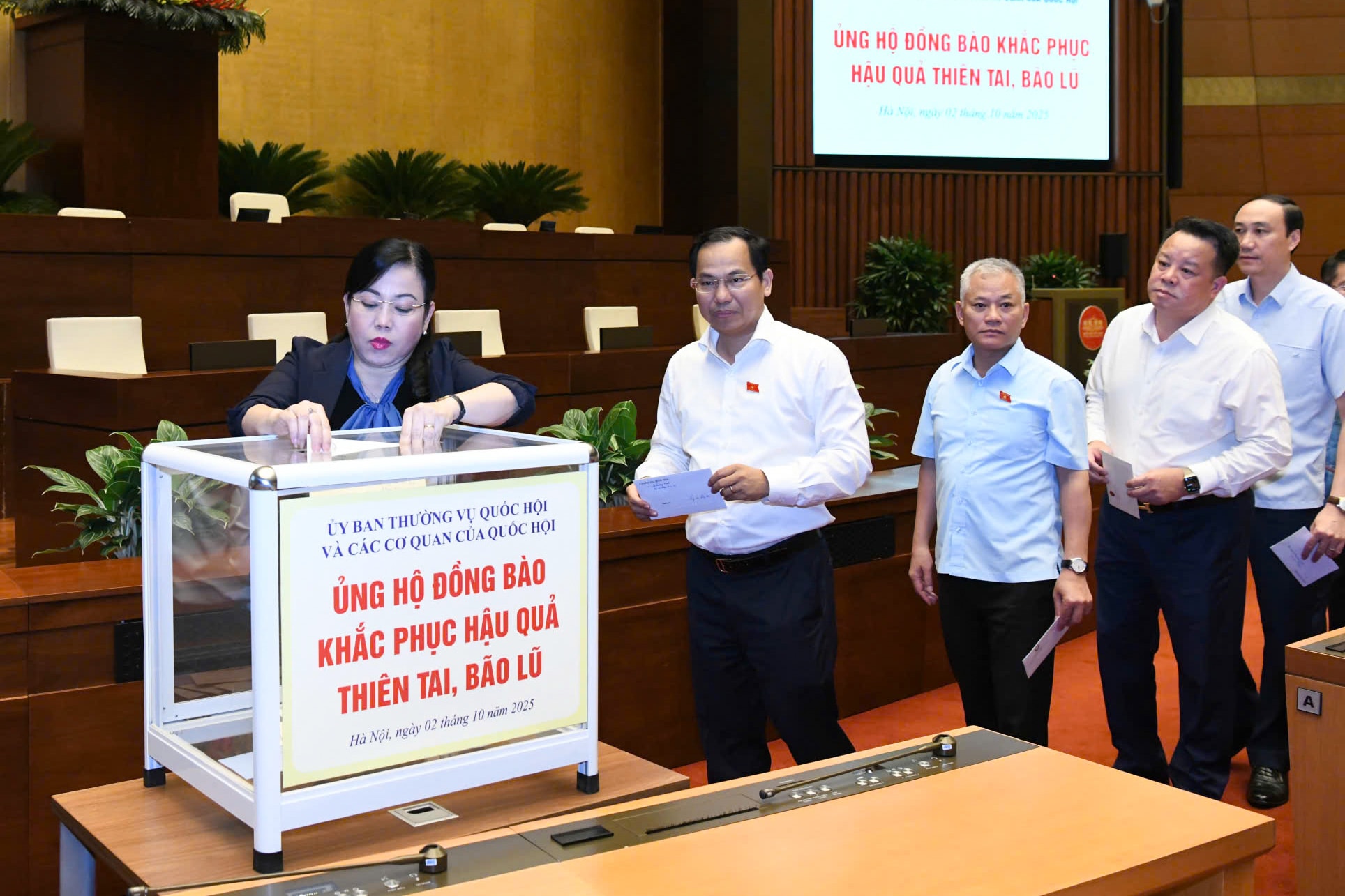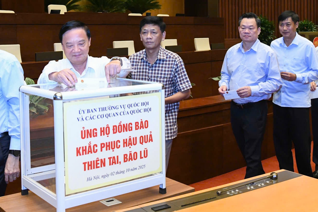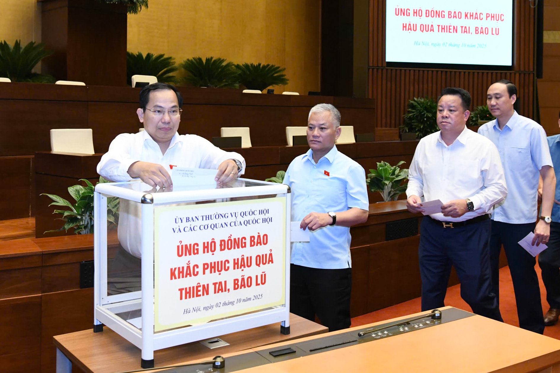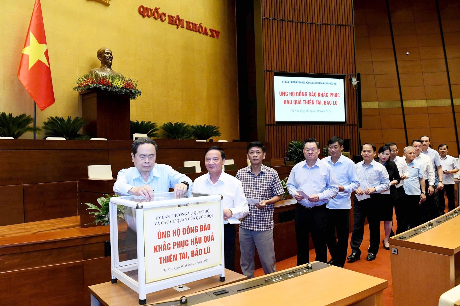 Ủy viên Bộ Chính trị, Chủ tịch Quốc hội Trần Thanh Mẫn và các Ủy viên Trung ương Đảng: Phó Chủ tịch Quốc hội Nguyễn Khắc Định, các Ủy viên Ủy ban Thường vụ Quốc hội cùng Thường trực Hội đồng Dân tộc, các Ủy ban của Quốc hội, toàn thể cán bộ công chức, viên chức, người lao động các cơ quan của Quốc hội, Văn phòng Quốc hội tham dự và ủng hộ tối thiểu mỗi người một ngày lương, góp phần chung tay cùng cả nước hỗ trợ đồng bào các tỉnh đang chịu ảnh hưởng nặng nề của bão lũ sớm khắc phục thiệt hại, ổn định cuộc sống.