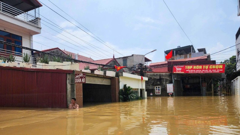 Lũ xuống chậm, nhiều hộ dân ở Bắc Ninh vẫn bị ngập sâu trong nước lũ.