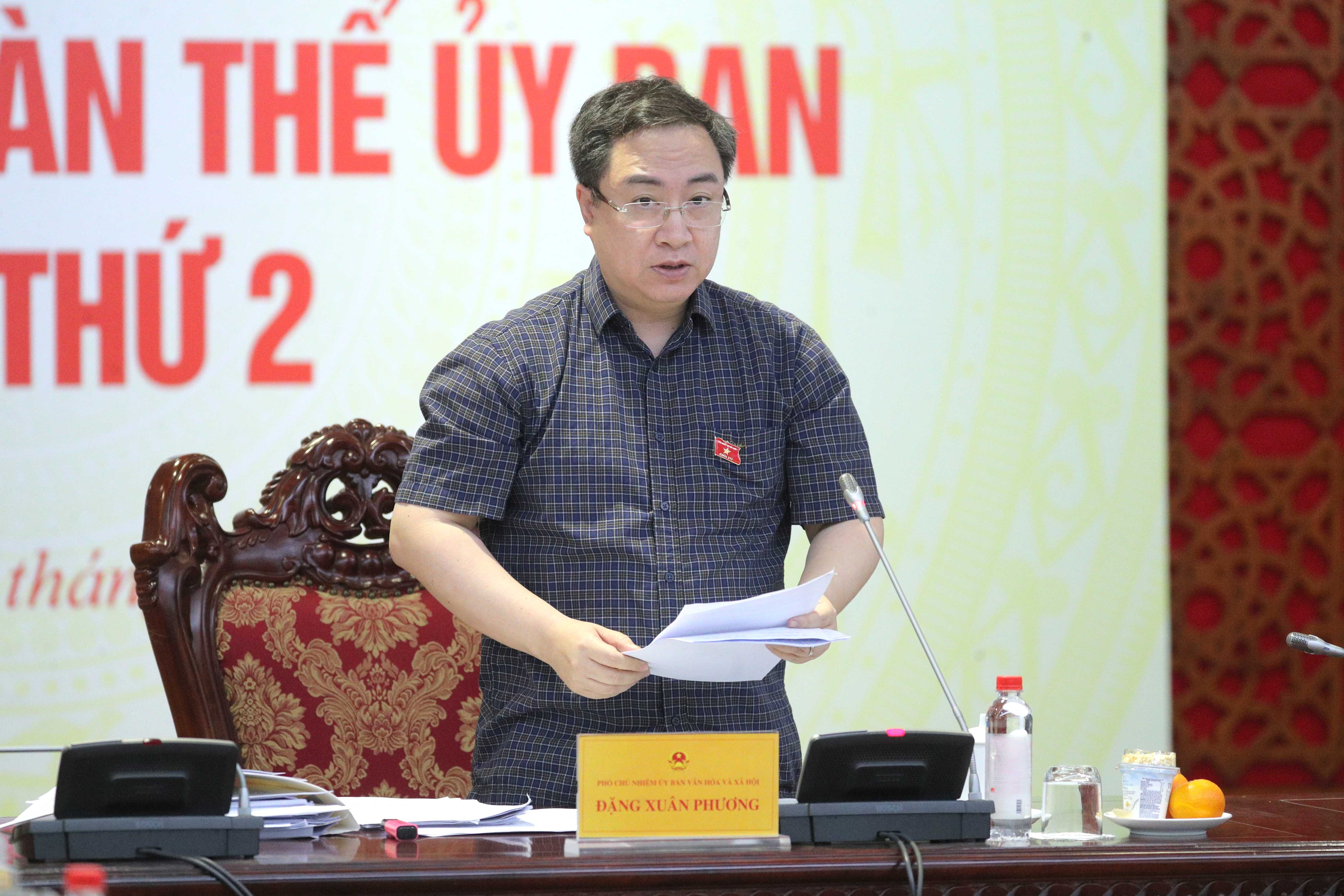 Phó Chủ nhiệm Ủy ban Văn hóa và Xã hội Đặng Xuân Phương trình bày dự thảo báo cáo thẩm tra