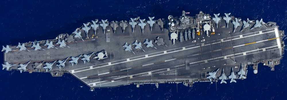 Boong tàu sân bay USS Abraham Lincoln nhìn từ trên cao. Ảnh: Seaforces