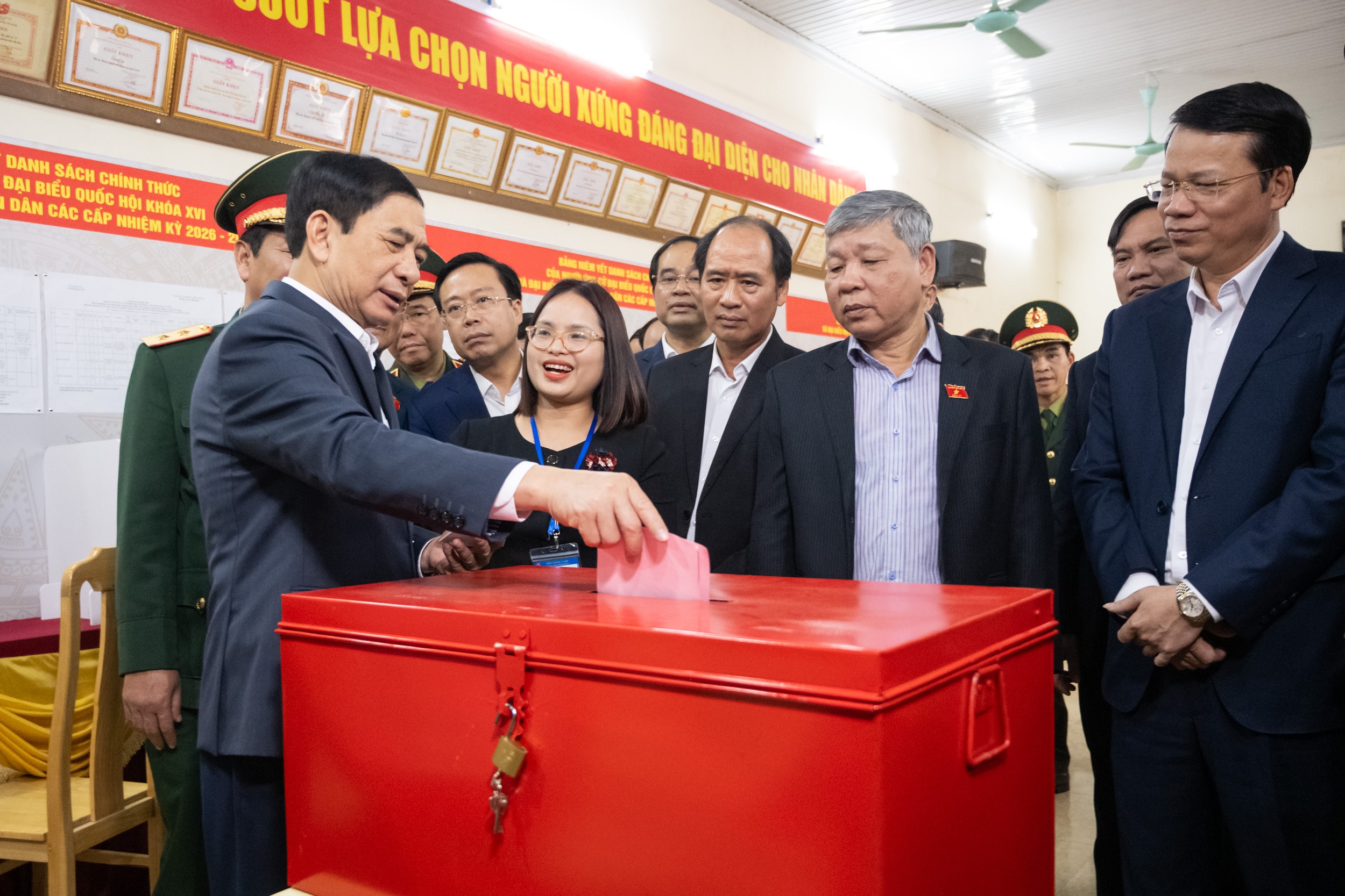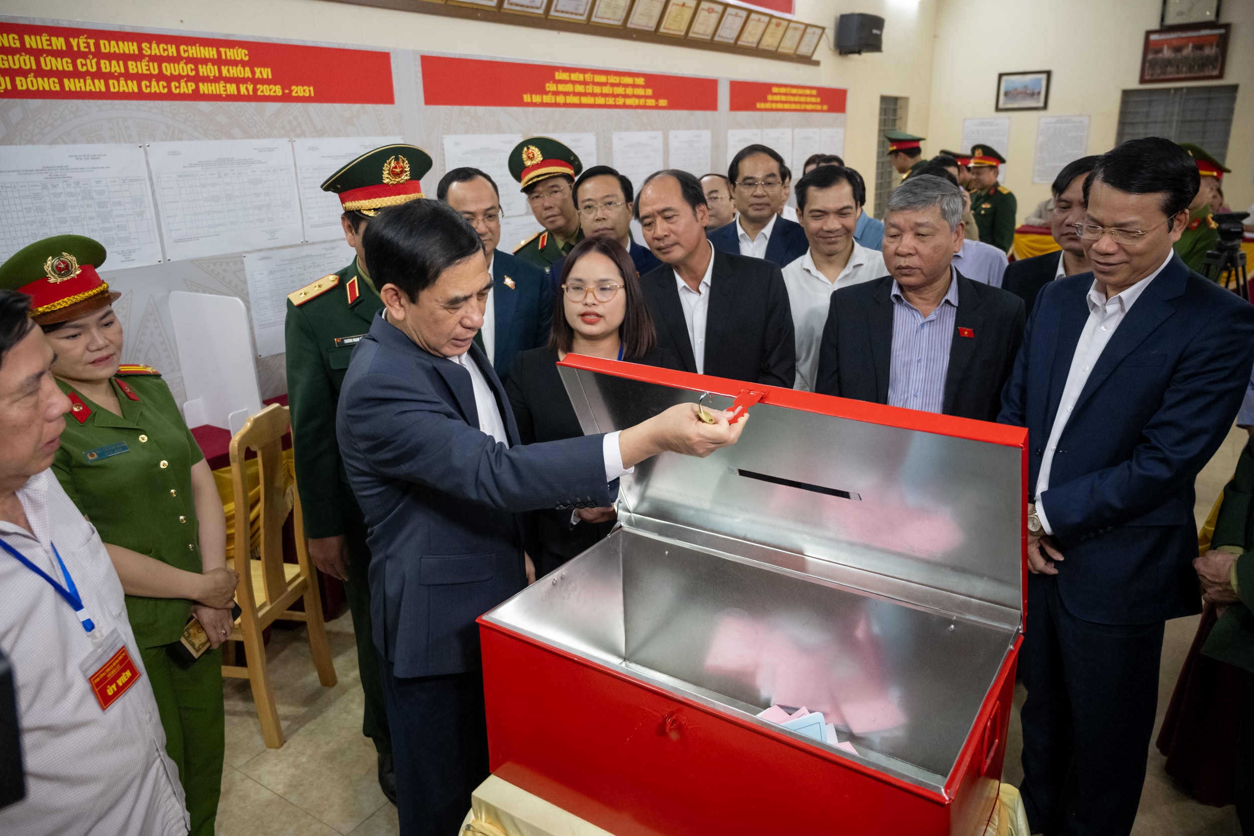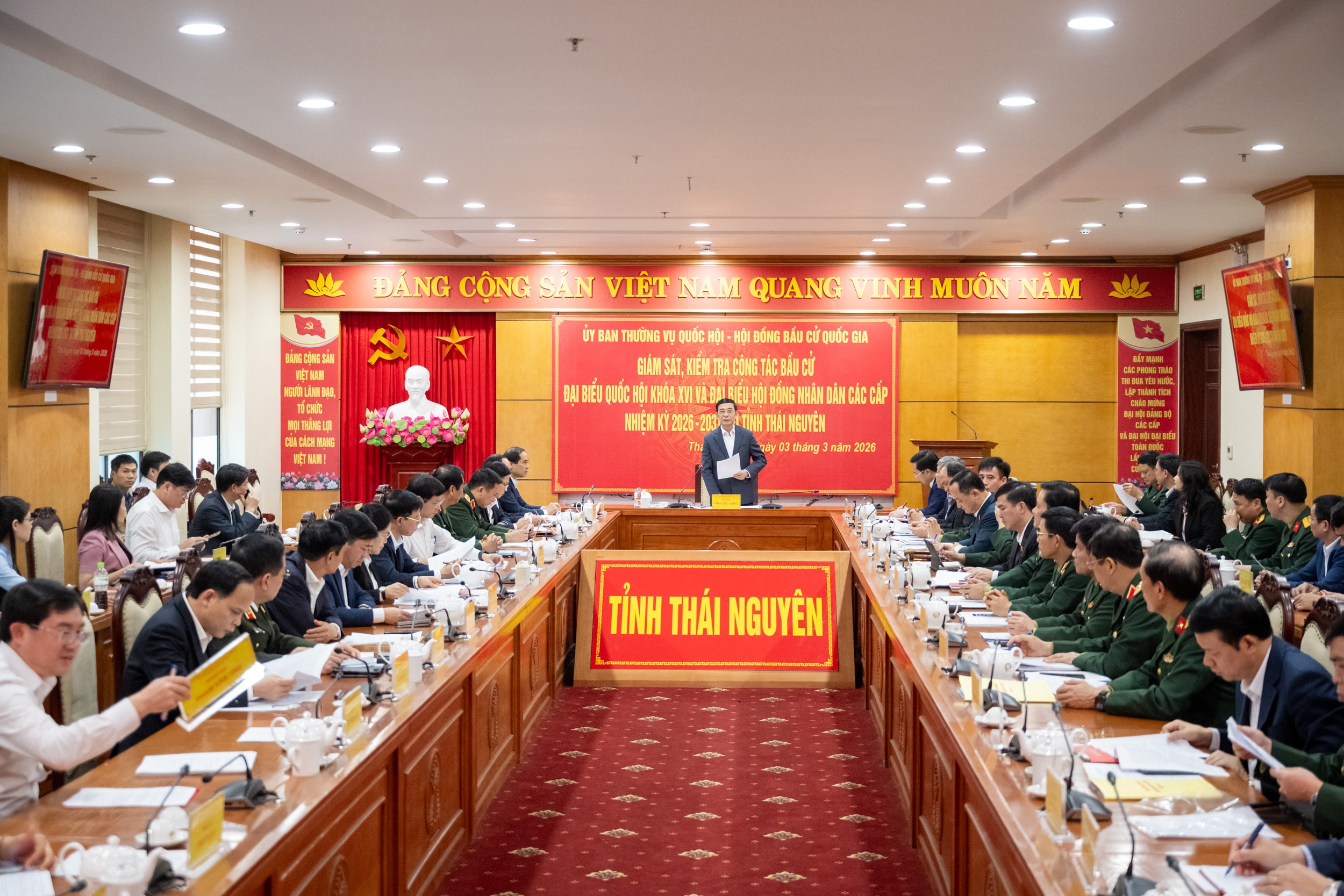 Đoàn giám sát, kiểm tra của Ủy ban Thường vụ Quốc hội và Hội đồng Bầu cử quốc gia về công tác bầu cử ĐBQH Khóa XVI và đại biểu HĐND các cấp nhiệm kỳ 2026 - 2031 kiểm tra thực tế tại Tổ bầu cử số 13, Khu vực Bỏ phiếu số 13, phường Phan Đình Phùng, tỉnh Thái Nguyên