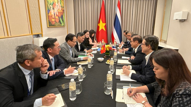 Ủy viên Bộ Chính trị, Bộ trưởng Ngoại giao Lê Hoài Trung gặp Bộ trưởng Ngoại giao Thái Lan Sihasak Phuangketkeow. (Ảnh: Bộ Ngoại giao)