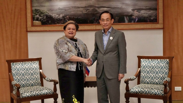 Ủy viên Bộ Chính trị, Bộ trưởng Ngoại giao Lê Hoài Trung gặp Bộ trưởng Ngoại giao Philippines Maria Theresa Lazaro. (Ảnh: Bộ Ngoại giao)