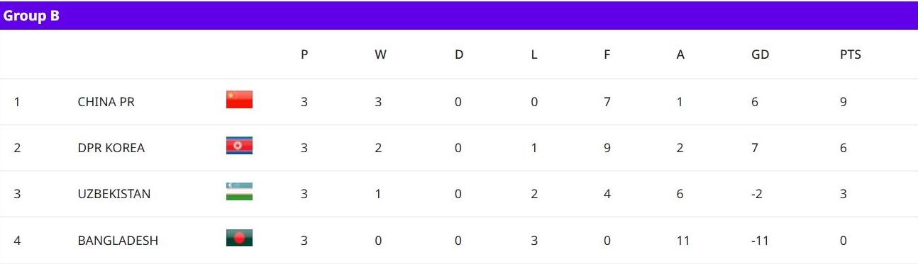 Và cuối cùng, Uzbekistan đã làm được điều này khi đánh bại Bangladesh 4-0. Bốn bàn thắng do công Khabibullaeva ghi phút 10, Nozimova (cú đúp 62, 66), Kudratova ghi phút 88.