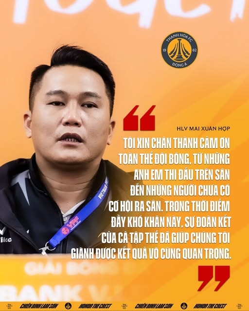 Chia sẻ của HLV Mai Xuân Hợp đã nói lên khó khăn của đội Thanh Hóa. Nhưng bóng đá khoong thể dựa mãi vào tinh thần - Ảnh: Fanpage Đông Á Thanh Hóa