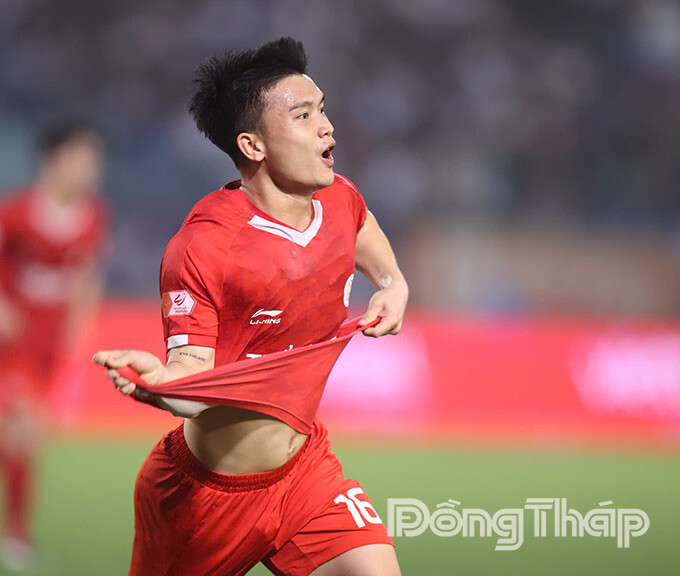 Văn Hậu lập siêu phẩm từ giữa sân giúp Công an Hà Nội thắng Thanh Hóa với tỷ số 3-1. Ảnh: bongdaplus.vn