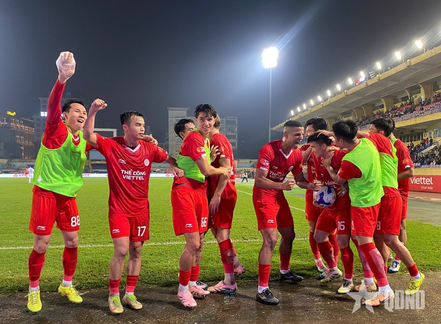 Các cầu thủ Thể Công-Viettel mừng thắng lợi quan trọng trước Thép Xanh Nam Định.