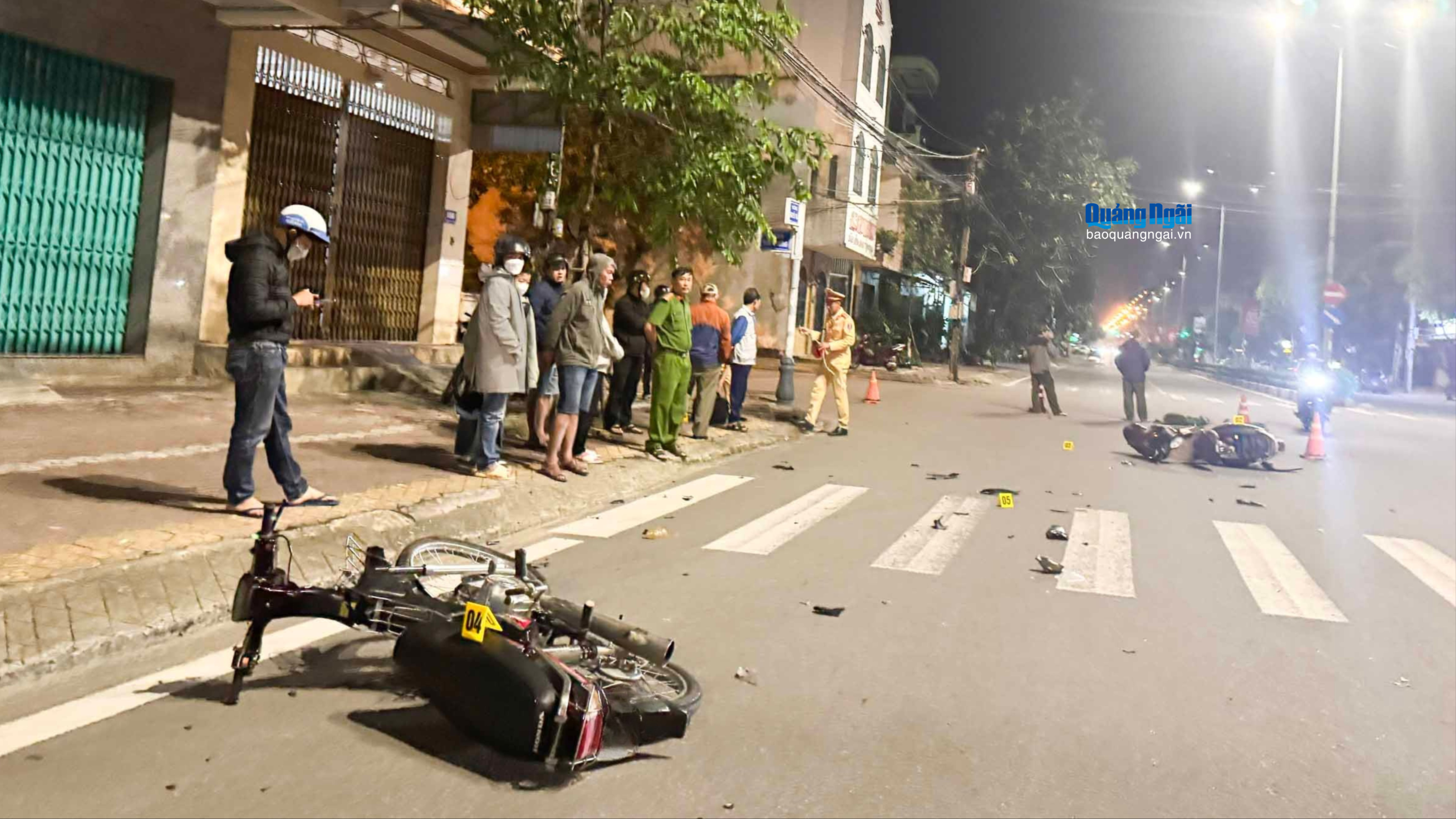 Tại thời điểm trên, xe máy có biển soát 76K4 - 05XX do một phụ nữ trẻ điều khiển, chở theo 2 trẻ em, đang băng qua đường Nguyễn Trãi theo hướng nam bắc thì bị xe máy biển số 76V3 - 21XX di chuyển theo hướng tây đông về ngã năm mới với tốc độ cao, tông mạnh. Theo thông tin ban đầu, tại thời điểm này, trên xe 76V3 - 21XX đang chở 3 thiếu niên.