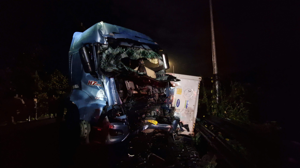 Hiện trường vụ tai nạn giữa container và xe tải trên đèo Bảo Lộc đêm 4/11.