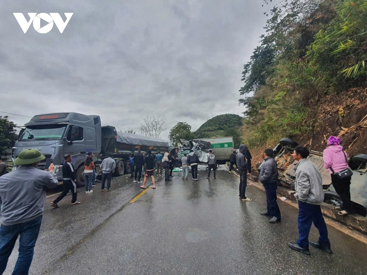 Thông tin ban đầu được biết, vụ tai nạn xảy ra khoảng 14h30 ngày 8/2 tại Km203+750, QL.6 thuộc địa phận phường Mộc Châu, tỉnh Sơn La. Thời điểm trên, xe ô tô tải BKS 29H-004xx lưu thông theo hướng Hà Nội – Sơn La đã xảy ra va chạm với xe ô tô đầu kéo BKS 26H-031xx kéo theo rơ mooc BKS 26RM-001xx lưu thông theo chiều ngược lại.