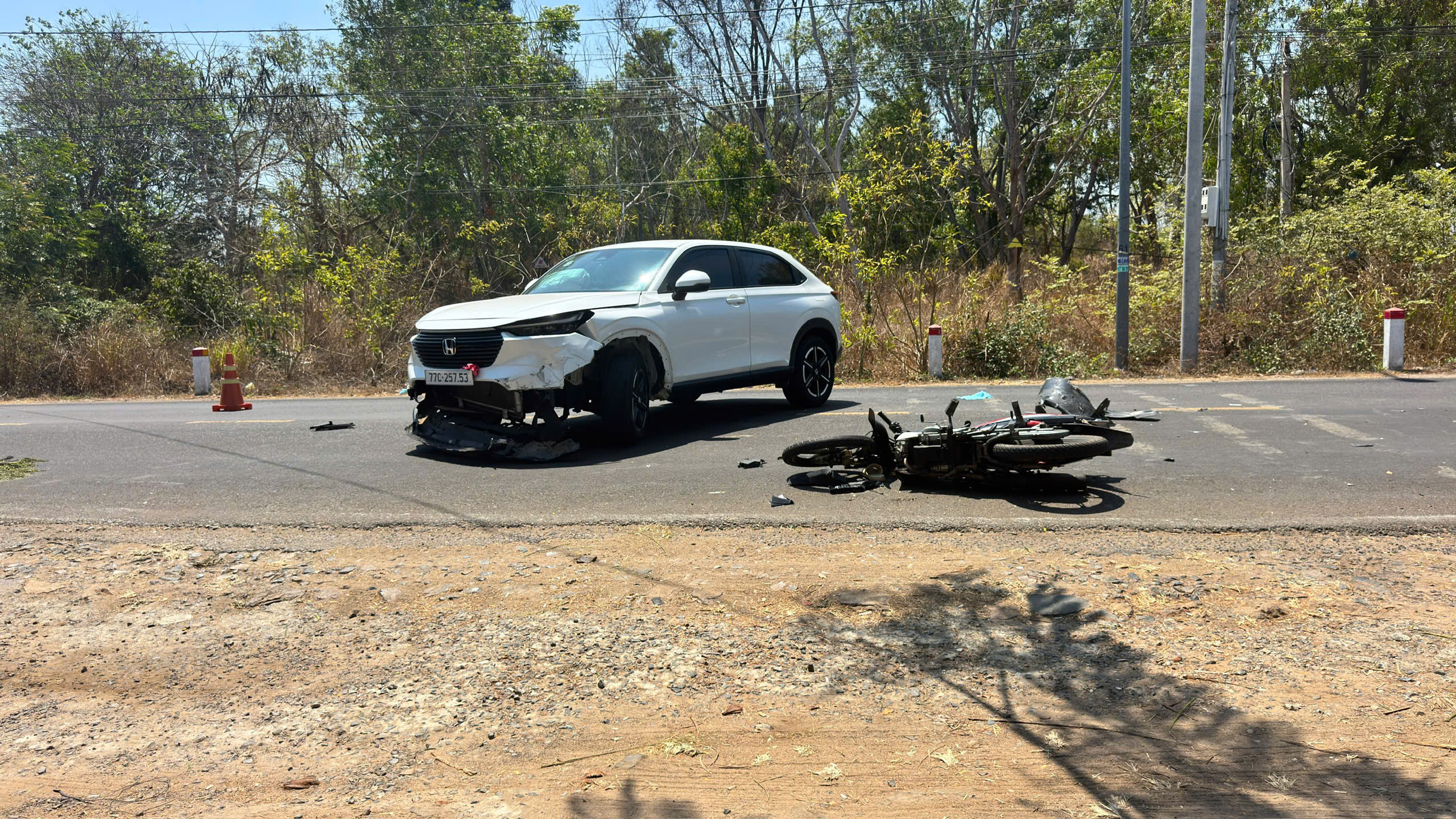 Theo thông tin ban đầu, trưa 4-4, hai người đàn ông lưu thông trên xe máy (chưa rõ người điều khiển) đã va chạm với ô tô đăng ký tại Bình Định (Gia Lai). Cú tông mạnh khiến 2 người trên xe máy văng xuống đường và được mọi người gần đó đưa đến Bệnh viện Đa khoa Bình Thuận cấp cứu nhưng nạn nhân HSL (52 tuổi) tử vong, người còn lại bị thương rất nặng.