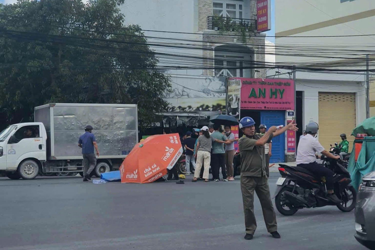 Tại hiện trường, xe máy bị hư hỏng, bên cạnh là một thùng dùng giao thức ăn của tài xế công nghệ. Ngay sau khi vụ tai nạn xảy ra, Công an phường An Khánh đã phối hợp cùng lực lượng CSGT nhanh chóng có mặt để phong tỏa hiện trường, tiến hành điều tra, làm rõ nguyên nhân vụ việc.