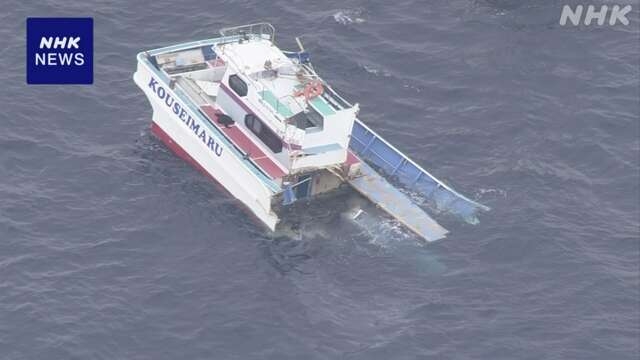 Vụ va chạm khiến tàu câu cá giải trí bị gãy làm đôi và lật úp. Ảnh: NHK