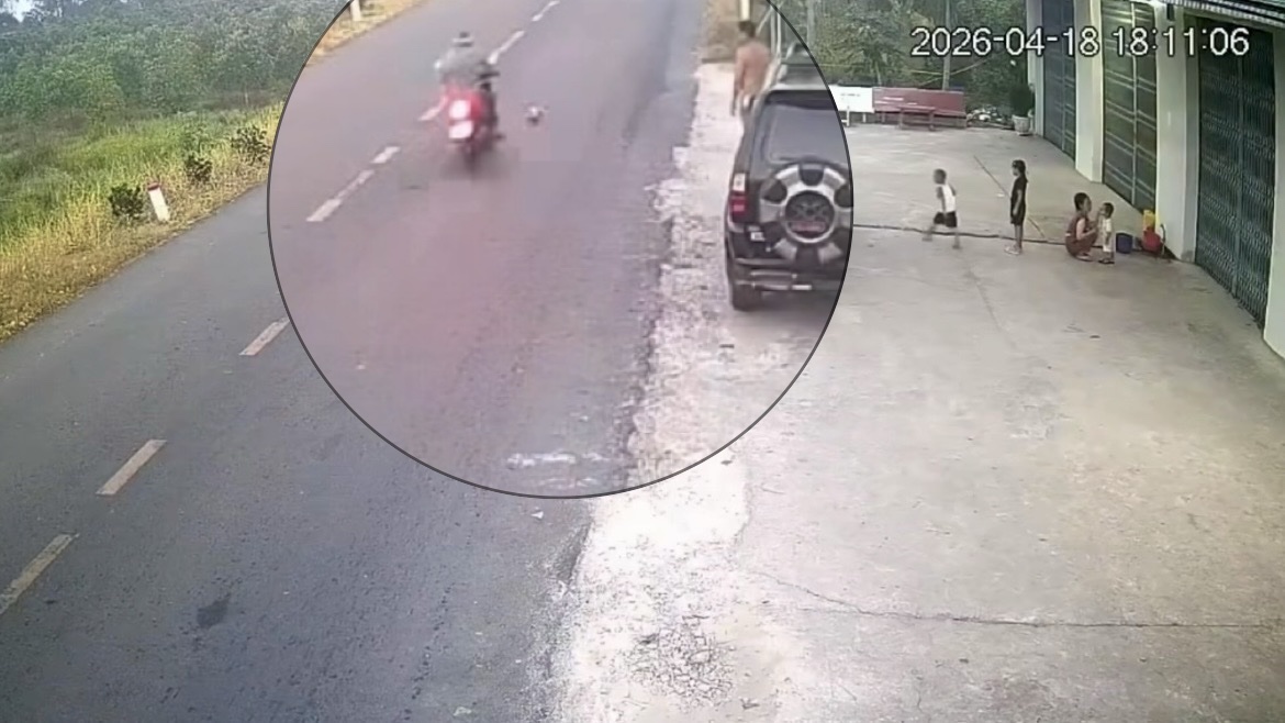 Clip ghi lại cảnh va chạm với quả bóng lăn ra đường, người đi xe máy ở Vĩnh Long tử vong.