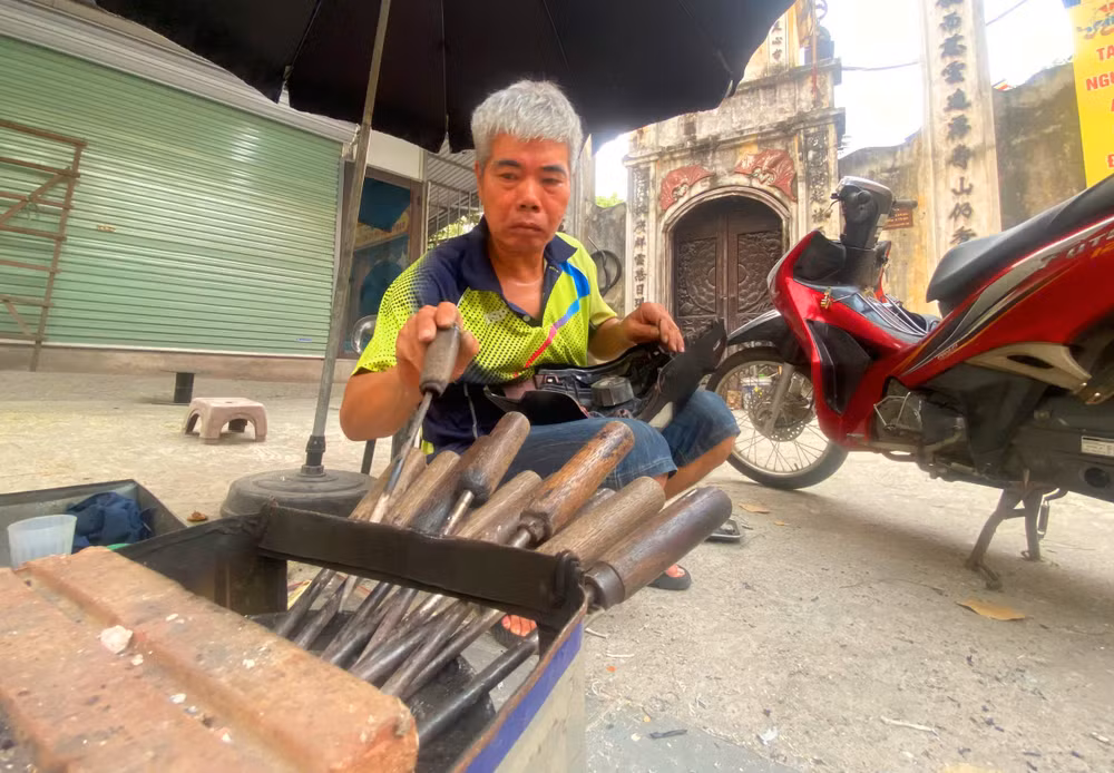Đồ nghề của thợ hàn đơn giản đến mức khó tin, chỉ vài chiếc mỏ hàn tự chế, cán gỗ, thân sắt