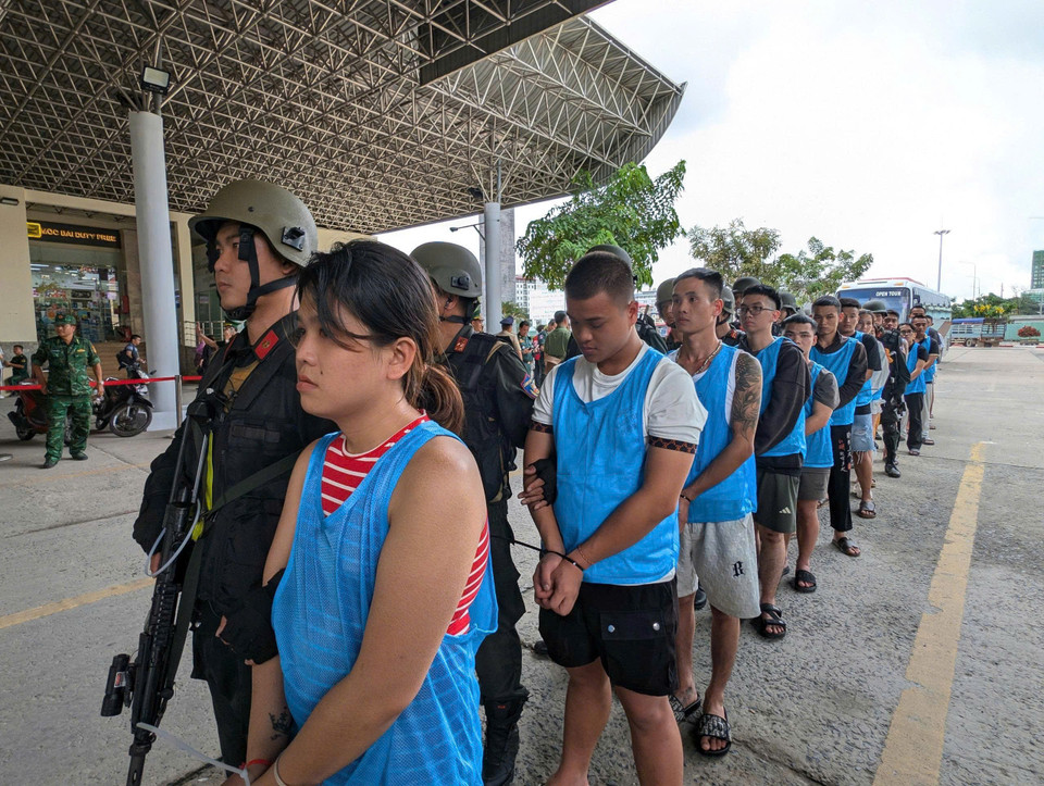 Chỉ trong khoảng thời gian từ tháng 10/2024, đường dây này đã tổ chức cho khoảng 900 người xuất cảnh trái phép sang Campuchia và khoảng 800 người nhập cảnh trái phép về Việt Nam. Các nạn nhân sau đó bị bán cho các công ty lừa đảo ở Campuchia, bị ép lao động hoặc bị đe dọa để gia đình phải nộp tiền chuộc. (Ảnh: CA. TPHCM cung cấp)