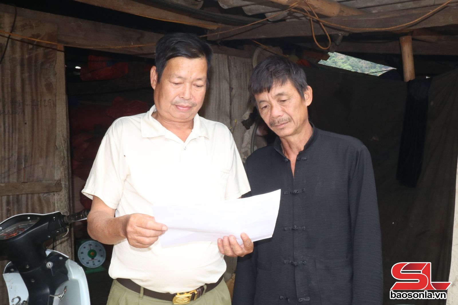 Ông Tòng Văn Lả (bên trái) người có uy tín bản Pá Xá Hồng, xã Chiềng Hoa tuyên truyền nhân dân tích cực tham gia xây dựng nông thôn mới.