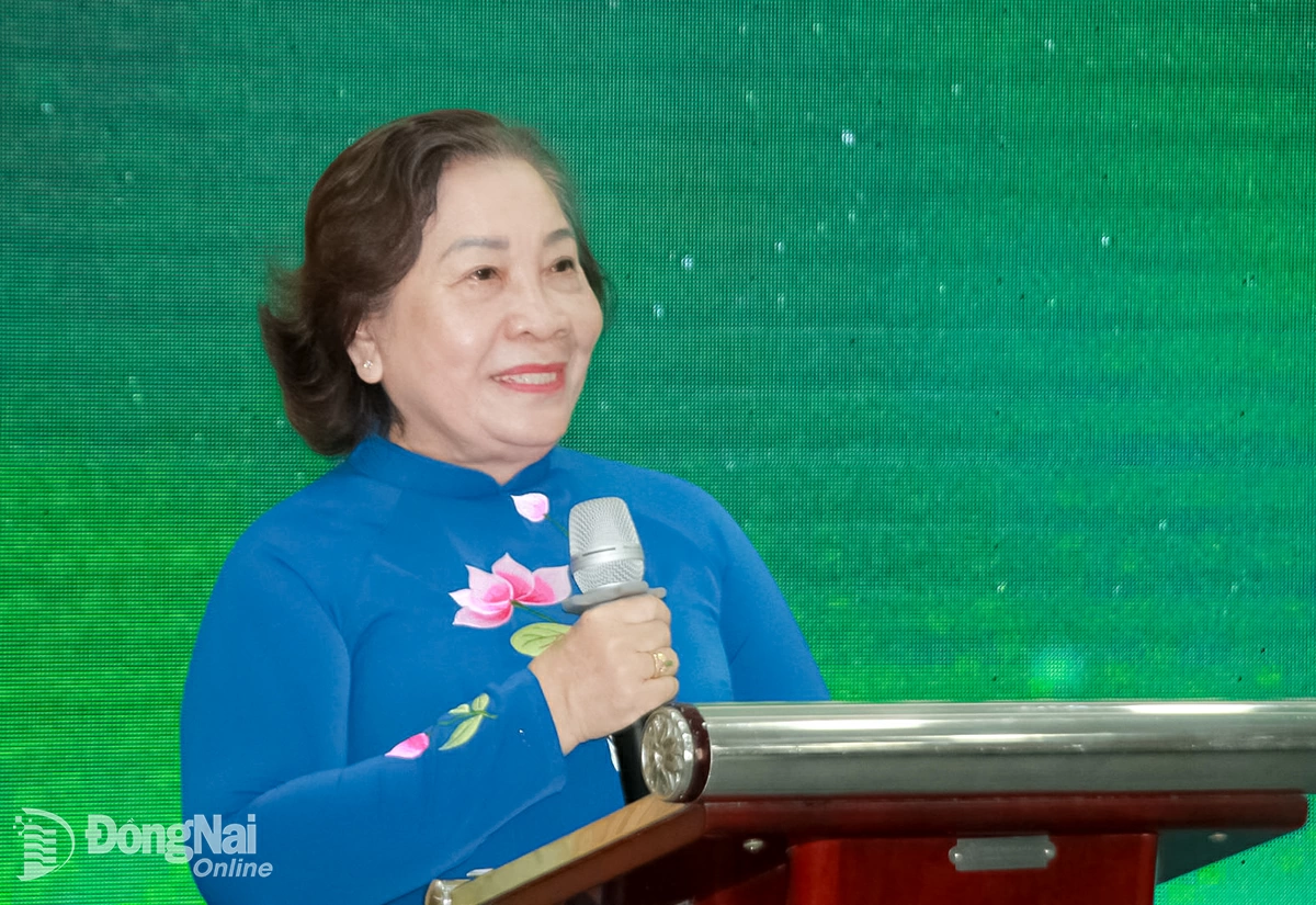 NGƯT-TS. Nguyễn Thị Thu Lan, Chủ tịch Hội Nữ trí thức tỉnh Đồng Nai phát biểu khai mạc hội thảo. Ảnh: Nga Sơn