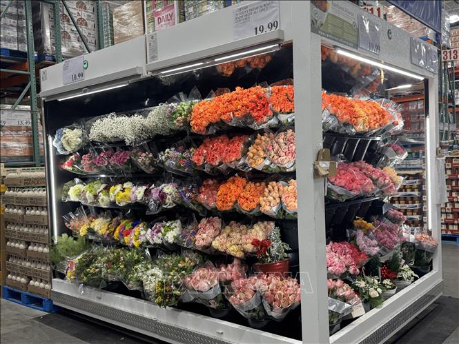 Hoa tươi bày bán tại chuỗi siêu thị bán lẻ Costco ở bang Maryland nhân dịp Lễ Tình nhân. Ảnh: Đoàn Hùng/TTXVN