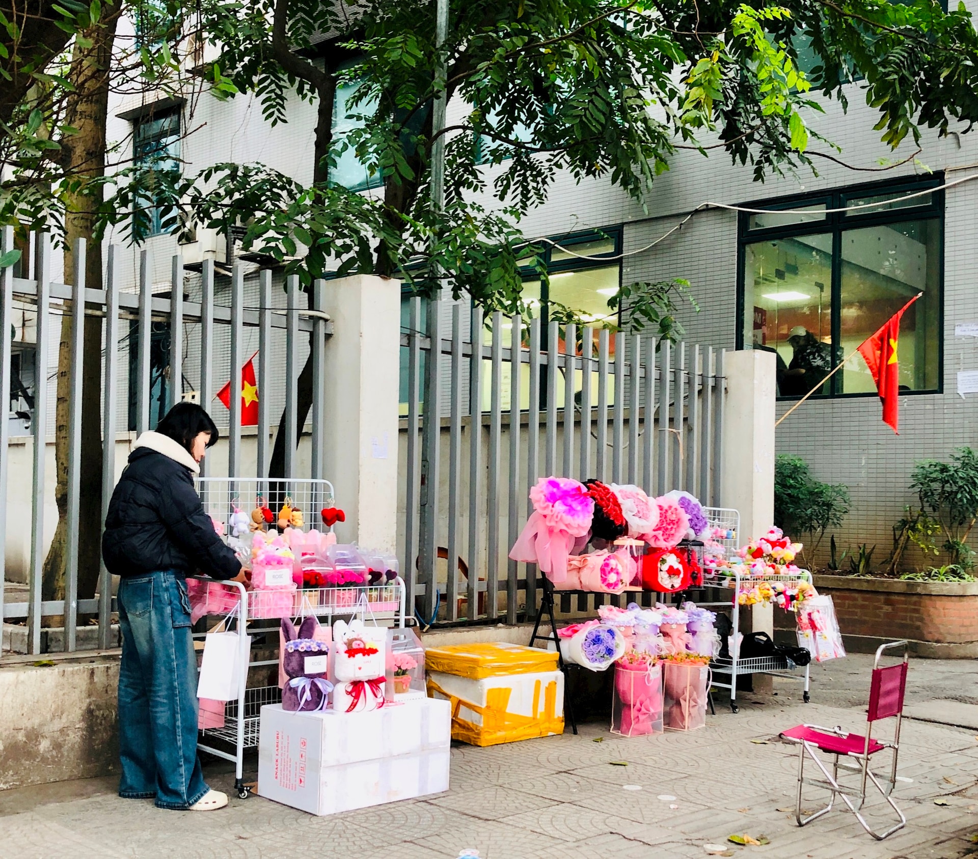 Một hàng bán quà tặng Valentine trên phố Chùa Láng - Ảnh: H.Y