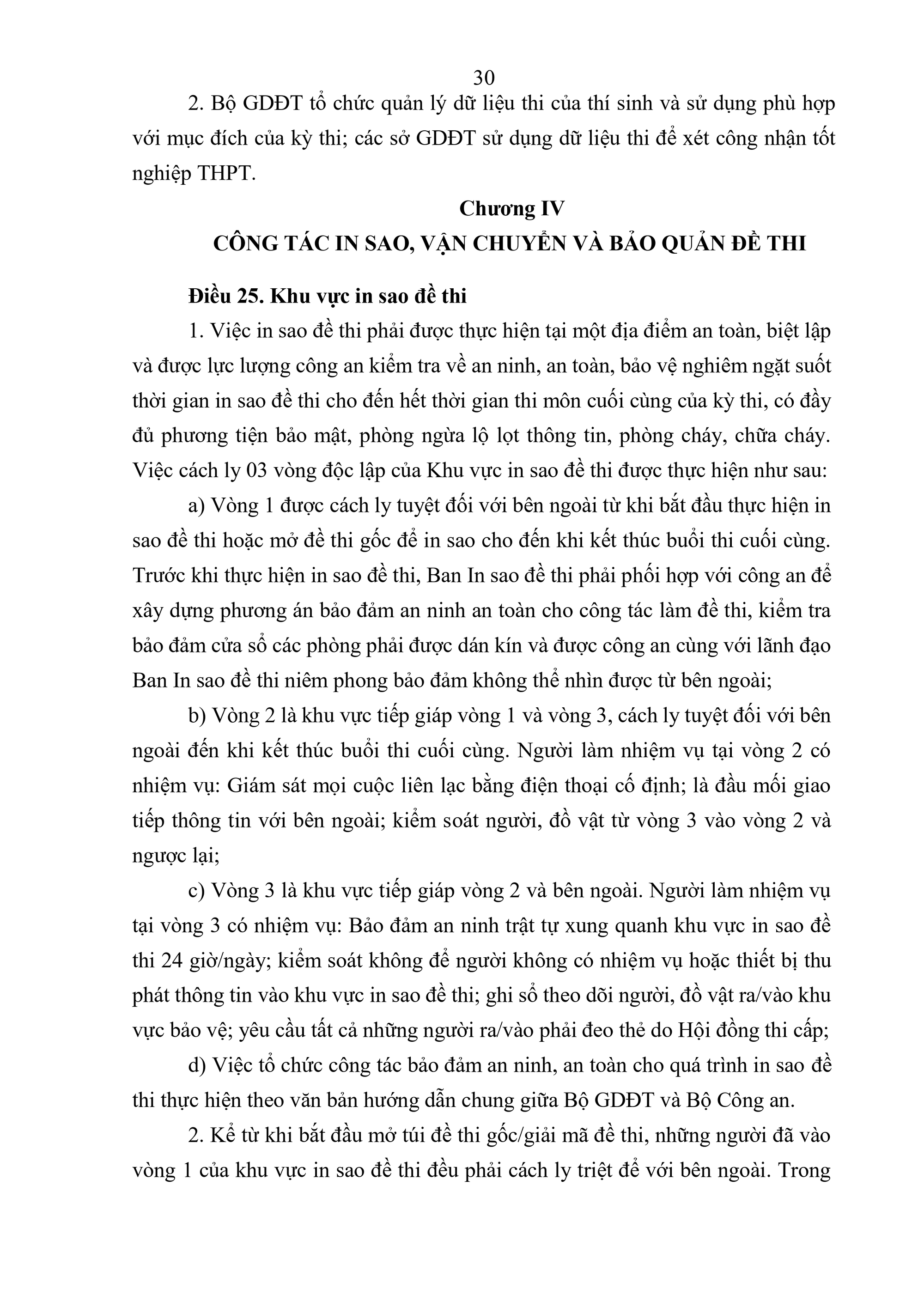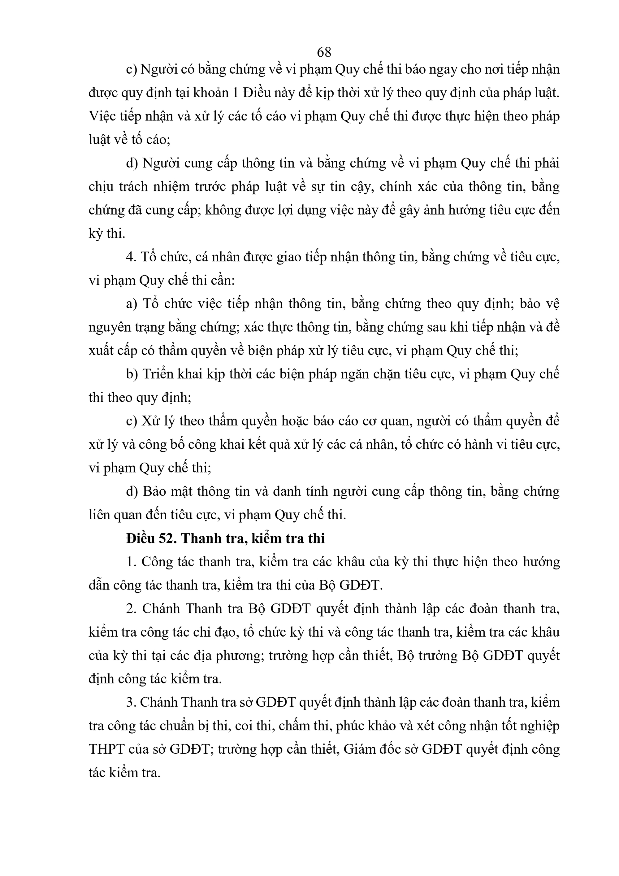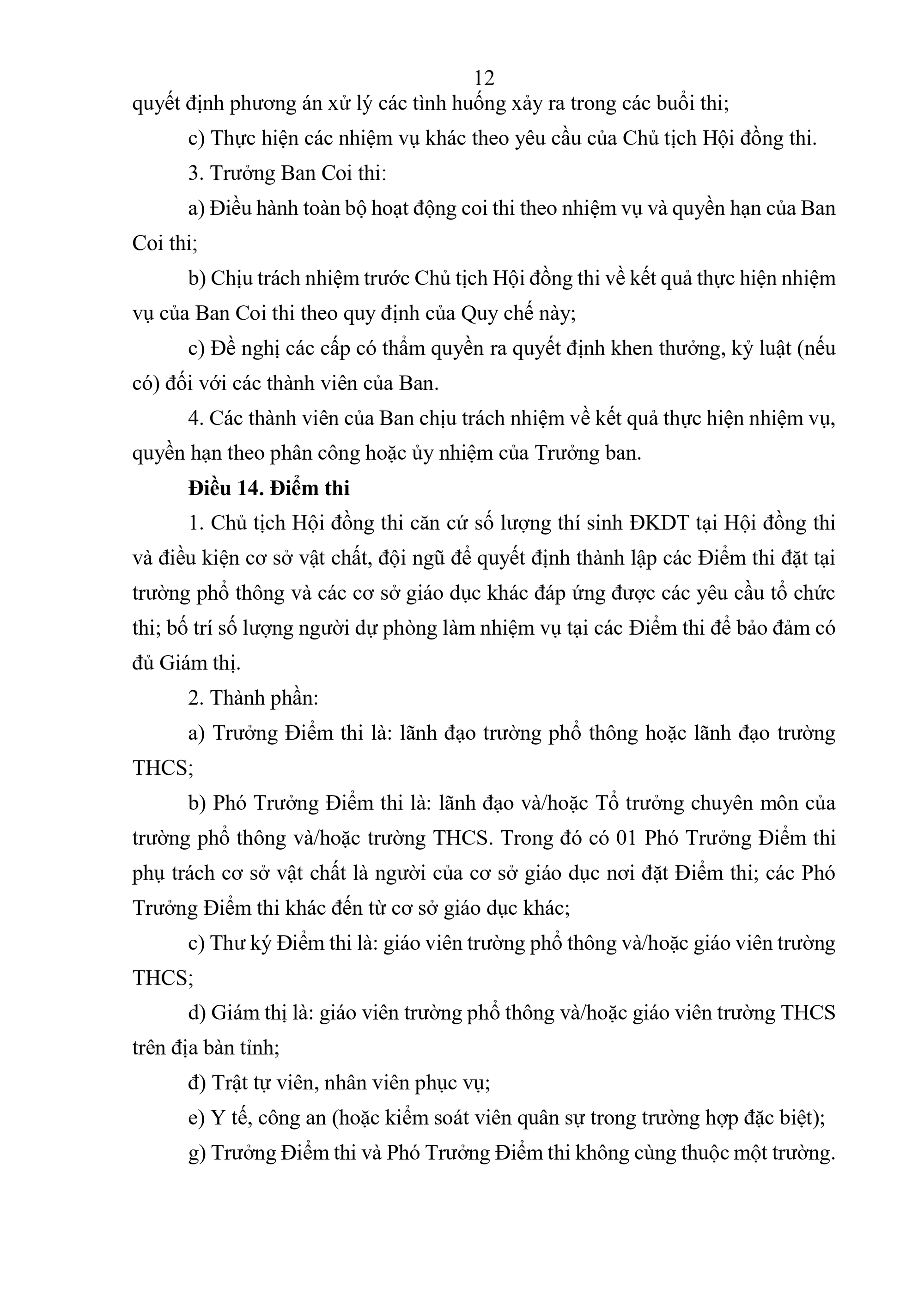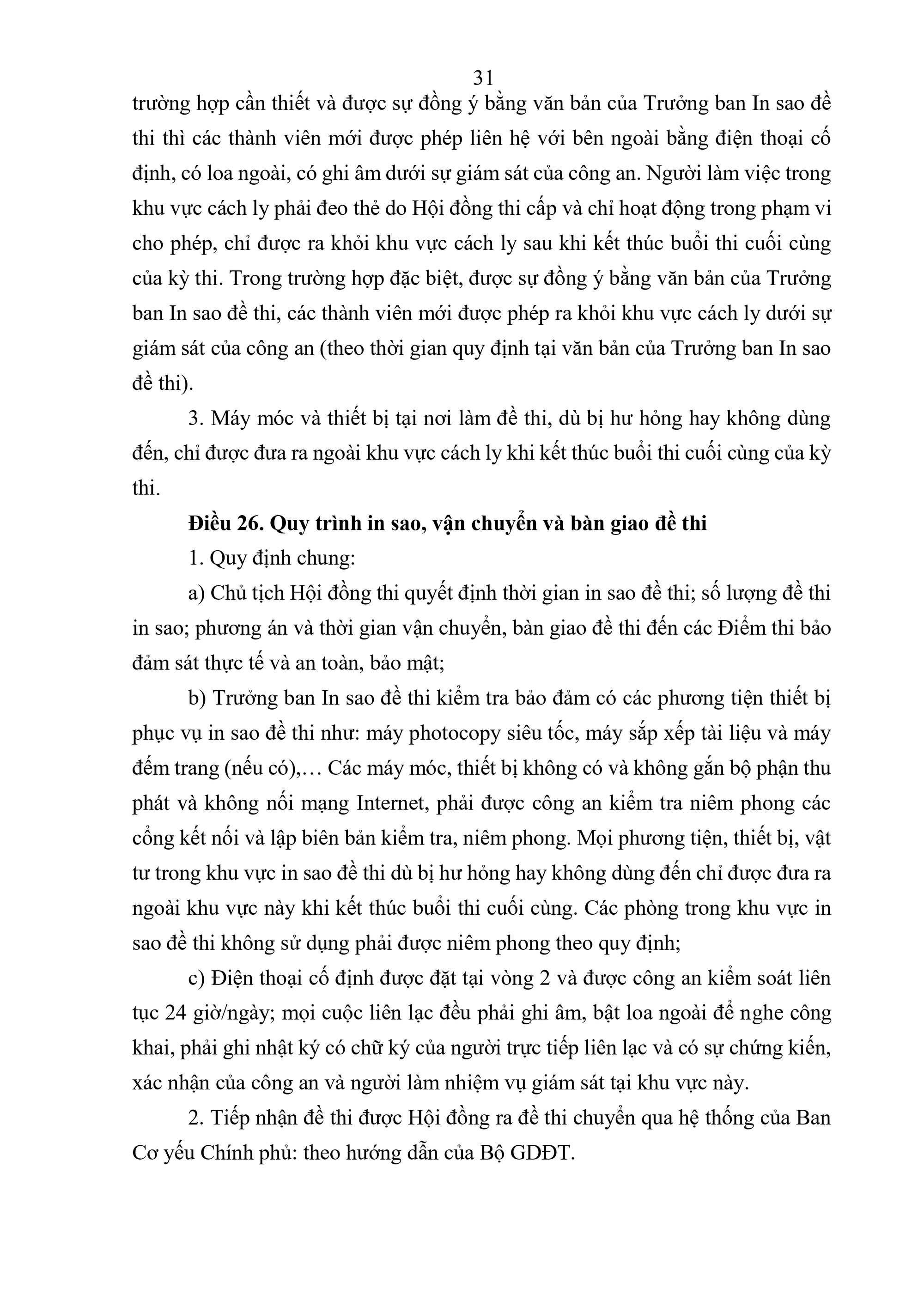 Quy chế Thi tốt nghiệp trung học phổ thông quy định về thi tốt nghiệp trung học phổ thông (sau đây gọi là Quy chế thi) bao gồm: Quy định chung; tổ chức thi và quản lý kỳ thi; đăng ký dự thi và chuẩn bị tổ chức thi; công tác in sao đề thi; coi thi; chấm thi; phúc khảo và chấm thẩm định; xét công nhận tốt nghiệp trung học phổ thông (THPT) và cấp Giấy chứng nhận hoàn thành chương trình giáo dục phổ thông; chế độ báo cáo và lưu trữ; kiểm tra, khen thưởng, xử lý các sự cố bất thường và xử lý vi phạm; tổ chức thực hiện.