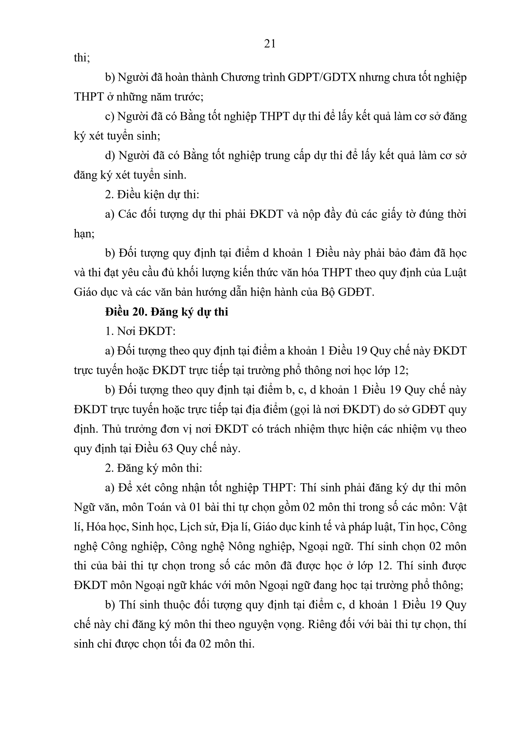 - Đối với người khuyết tật học theo chương trình giáo dục chung: Học hết chương trình THPT; đủ điều kiện dự thi theo quy định tại khoản 2 Điều 19 Quy chế này; có giấy xác nhận khuyết tật do cơ quan có thẩm quyền cấp;